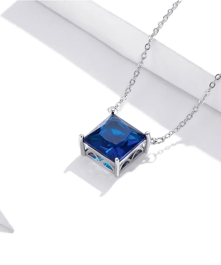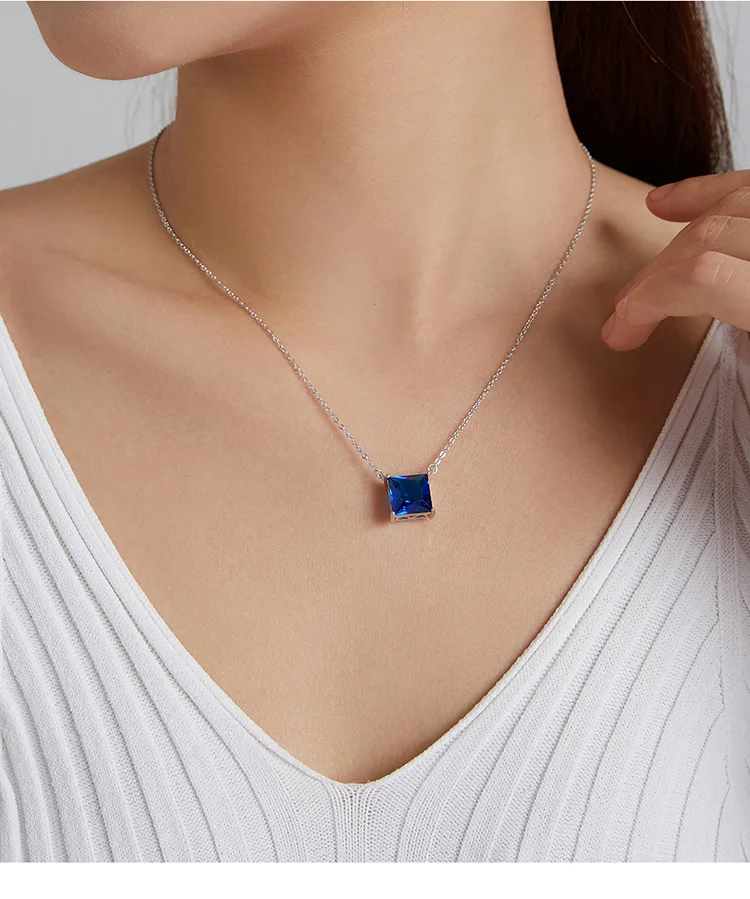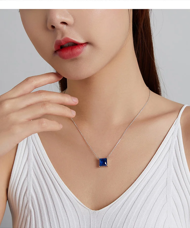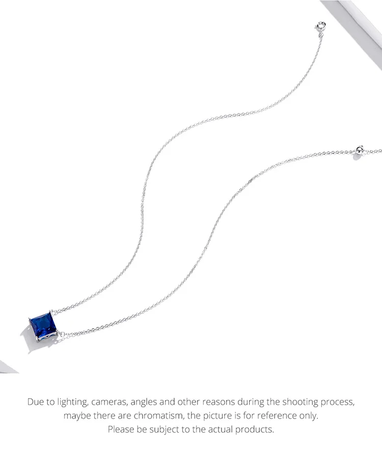 Wostu Новое 925 пробы Серебряное ожерелье цепочка синий квадрат блестящие камни простое ожерелье хорошее ювелирное изделие подарок FIN456