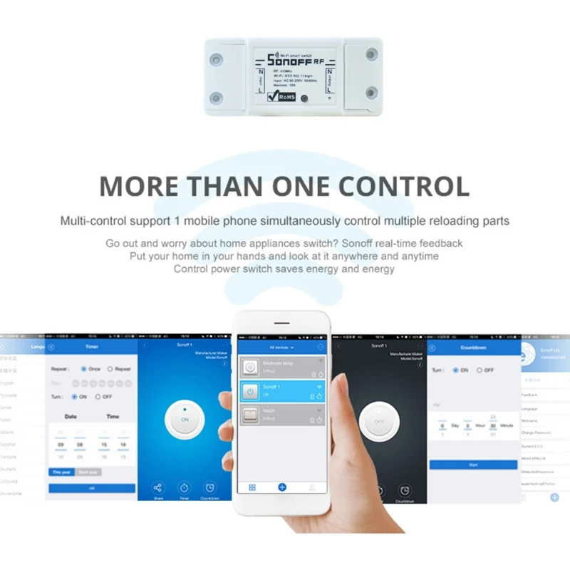 Это доступный смарт-переключатель WiFi, который предоставляет пользователям умное домашнее управление.Это выключатель питания с дистанционным управлением, который может подключаться к широкому спектру приборов.Беспроводной электрический переключатель передает данные на облачную платформу через Wi-Fi роутер, который позволяет пользователям удаленно управлять всеми подключенными устройствами, через мобильное приложение eWeLink.Пульт дистанционного управления Wi-Fi: вы можете использовать приложение Smart Life в вашем смартфоне для беспроводного управления переключателем с помощью Wi-Fi или сети 4G. Не требуется концентратор.Функция синхронизации: полностью Управляйте своим домом или офисом благодаря таймеру расписания, который позволит вам спланировать точное время для автоматического включения/выключения ламп и приборов.Совместно используемое устройство: Этот переключатель samrt может иметь несколько узлов управления, которыми пользуются различные члены семьи. Один мобильный телефон также может управлять многими переключателями.Только беспроводной пульт дистанционного управления, другие аксессуары на фото не включены