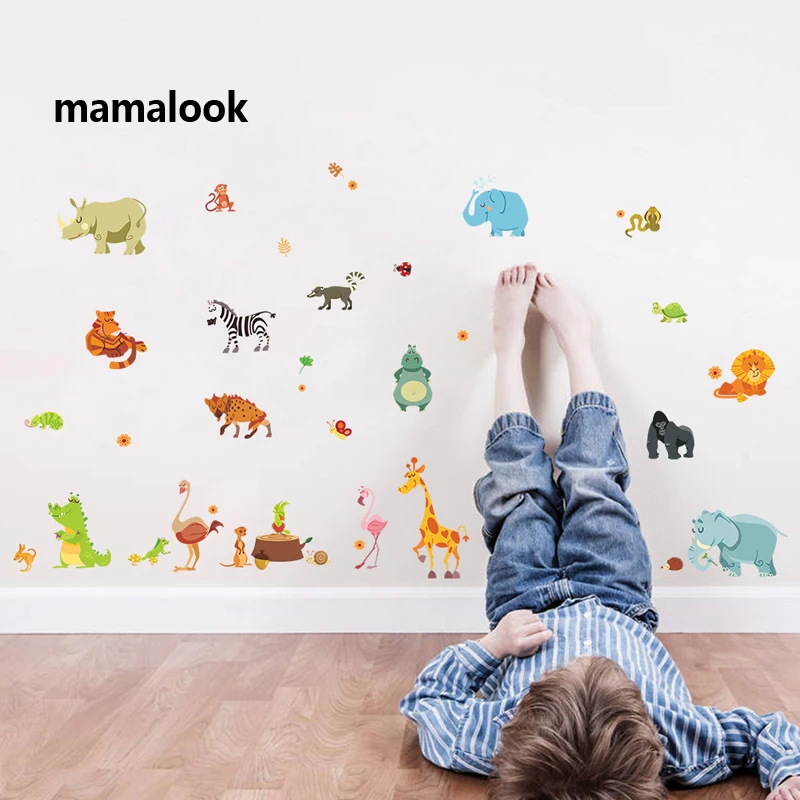 Джунгли дикие животные DIY Наклейка на стену для детей Детская комн...