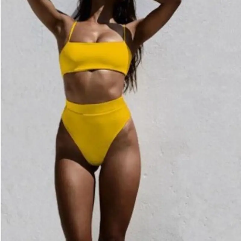 Сексуальный комплект бикини, однотонное бикини с пуш-ап, женский бюстгальтер на бретельках, купальник с высокой талией, женский купальник, Бразильский бикини с тонгами