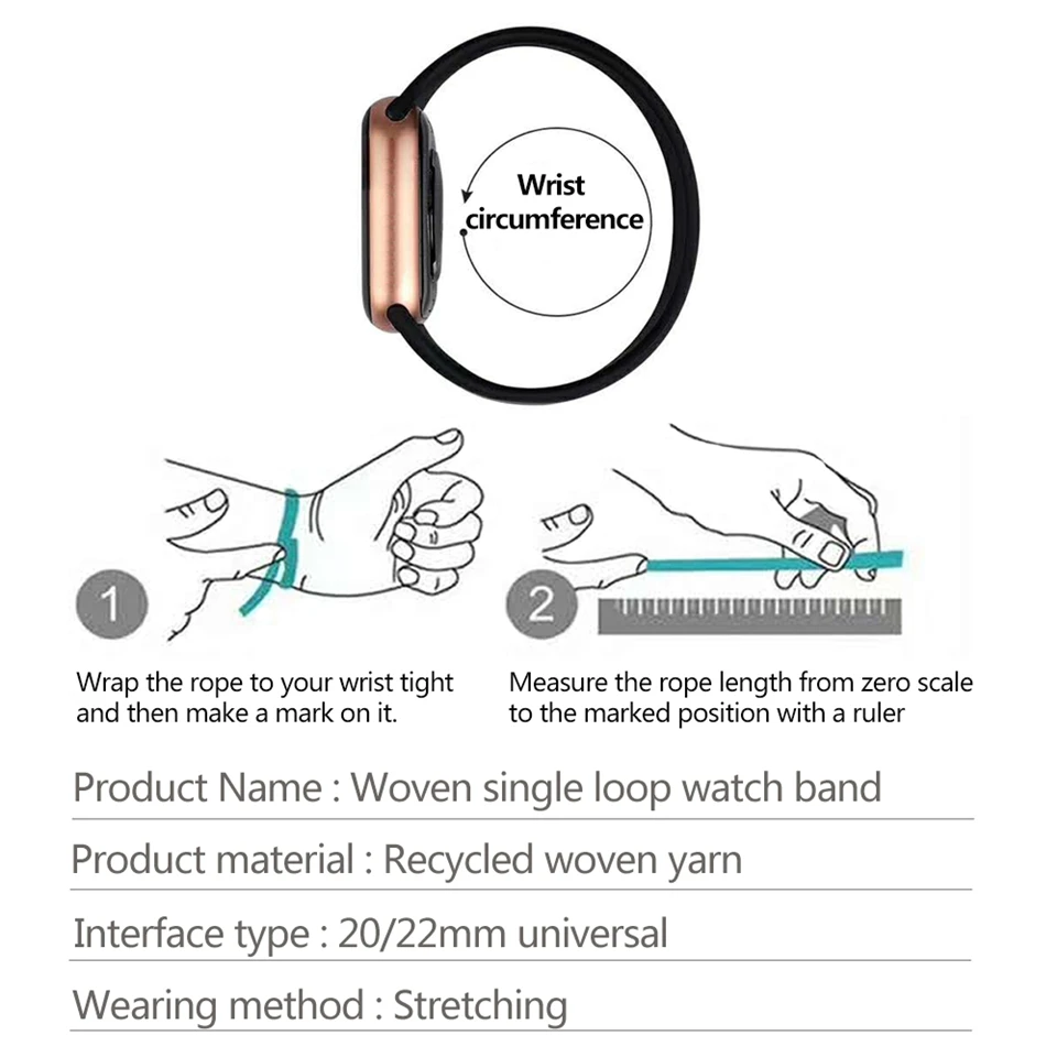 20 мм/22 мм плетеный браслет Solo Loop для Amazfit Gtr Huawei GT/2 растягивающийся тканый ремешок для Samsung Galaxy Watch 3/Active 2/Gear S3