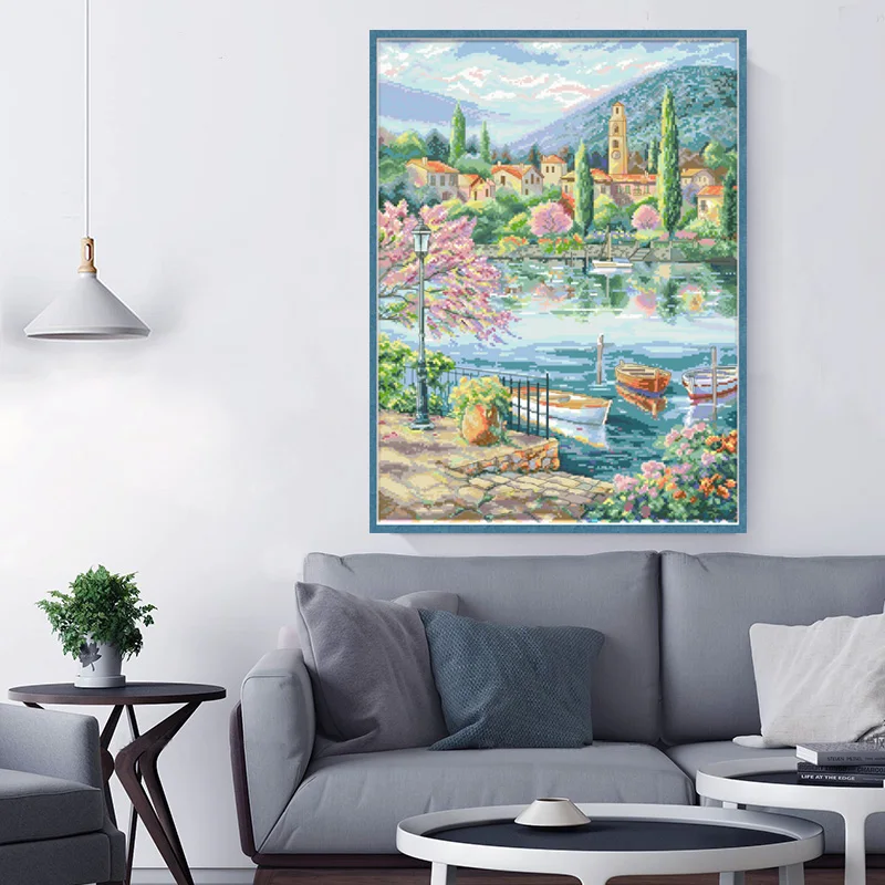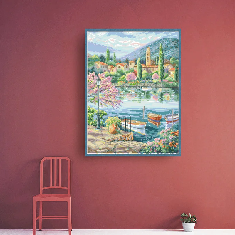 Набор для вышивки крестиком с изображением портового пейзажа, набор...