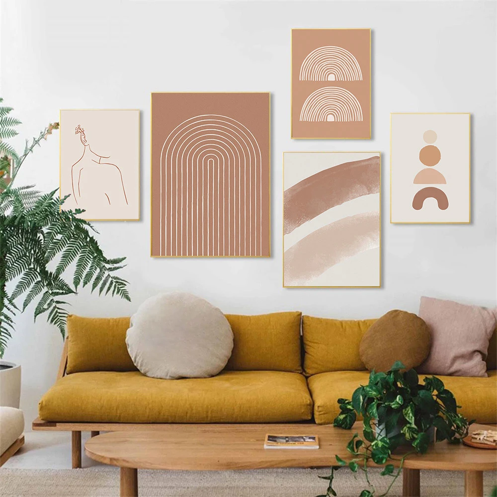 Богемный абстрактный постер с радужной линией, Современная средневековая холщовая живопись, Терракотовая Геометрическая настенная Художественная печать, декоративное изображение