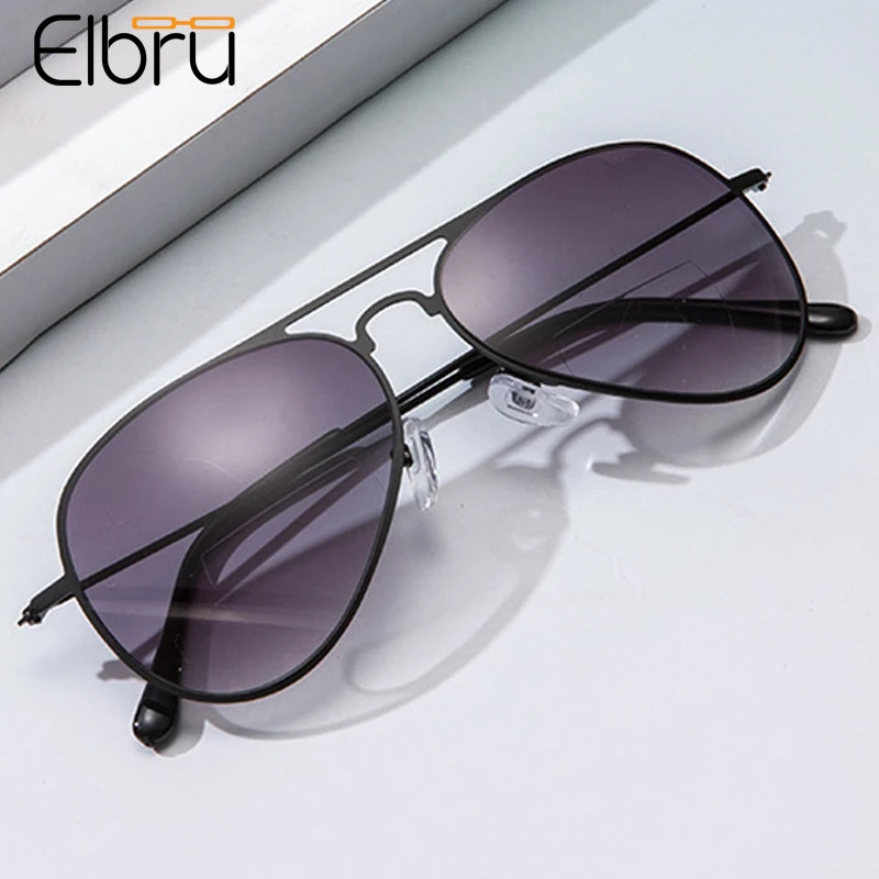 Elbru модные HD бифокальные очки для чтения для женщин и мужчин ультралегкие металлические линзы пилота серые очки пресбиопии диоптрии + 1,0 + 3,5