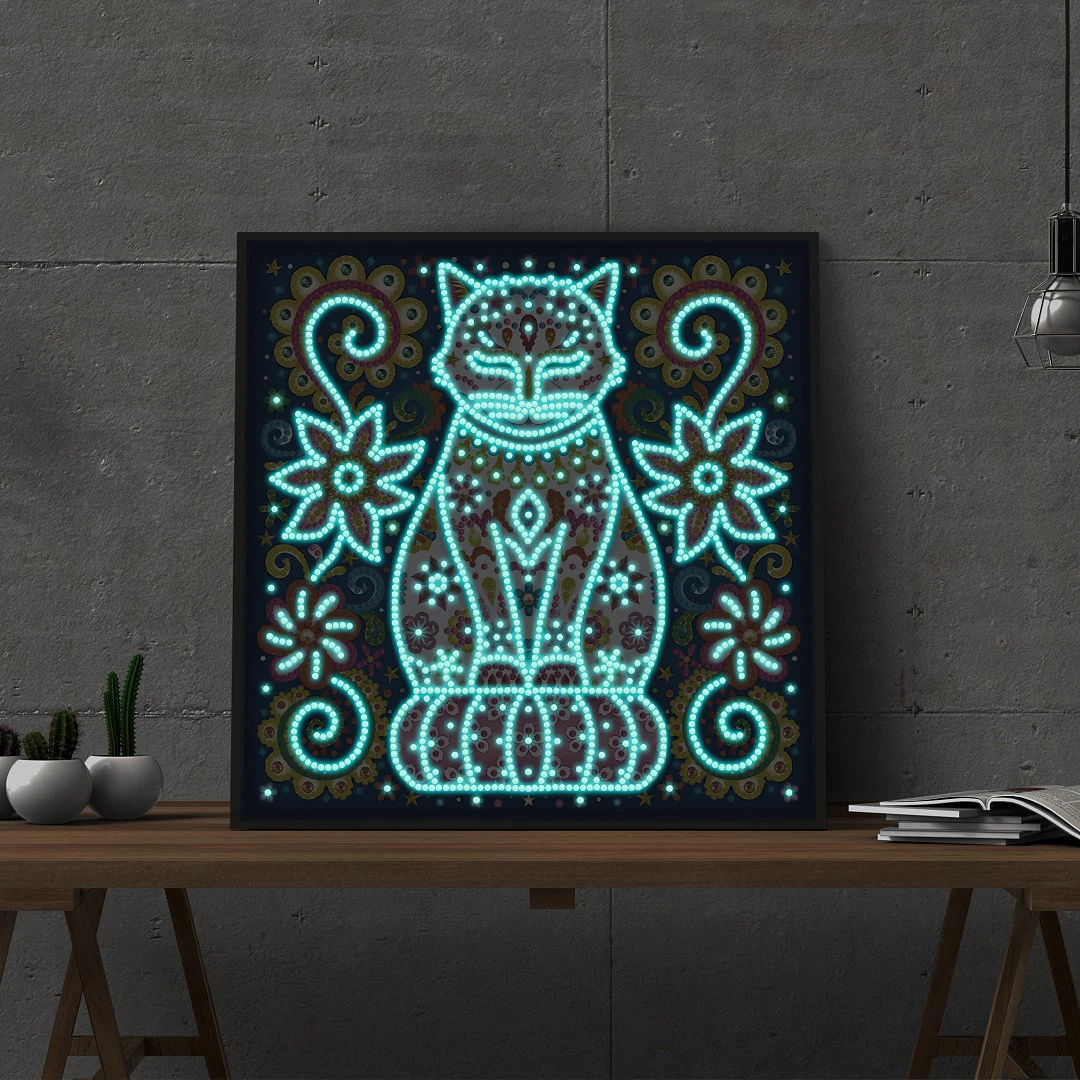 Алмазная живопись сделай сам, картина волк с подсветкой в ночное вр...