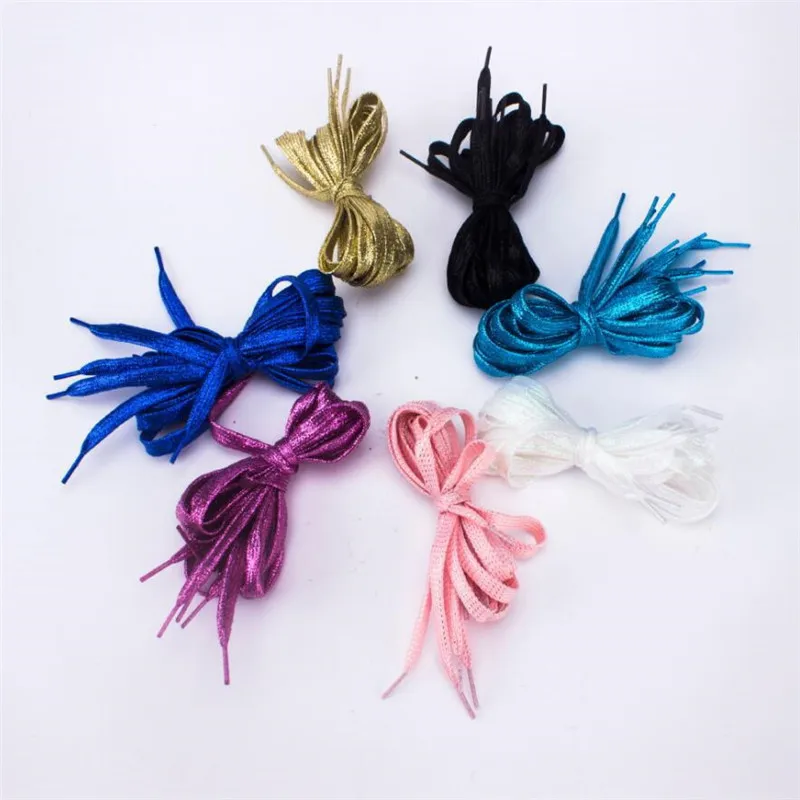 Шнурки унисекс, плоские, блестящие, золотистые, серебристые, черные...
