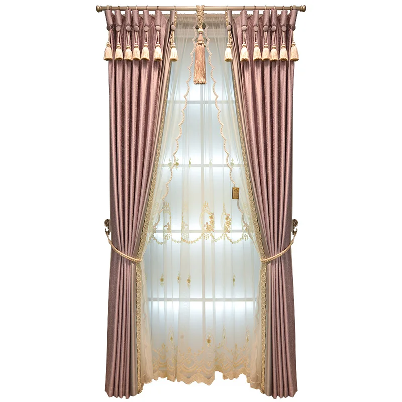 Шторы в европейском стиле, роскошные занавески из розовой ткани с в...
