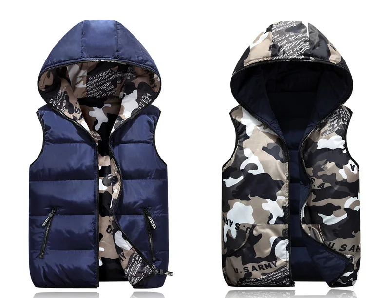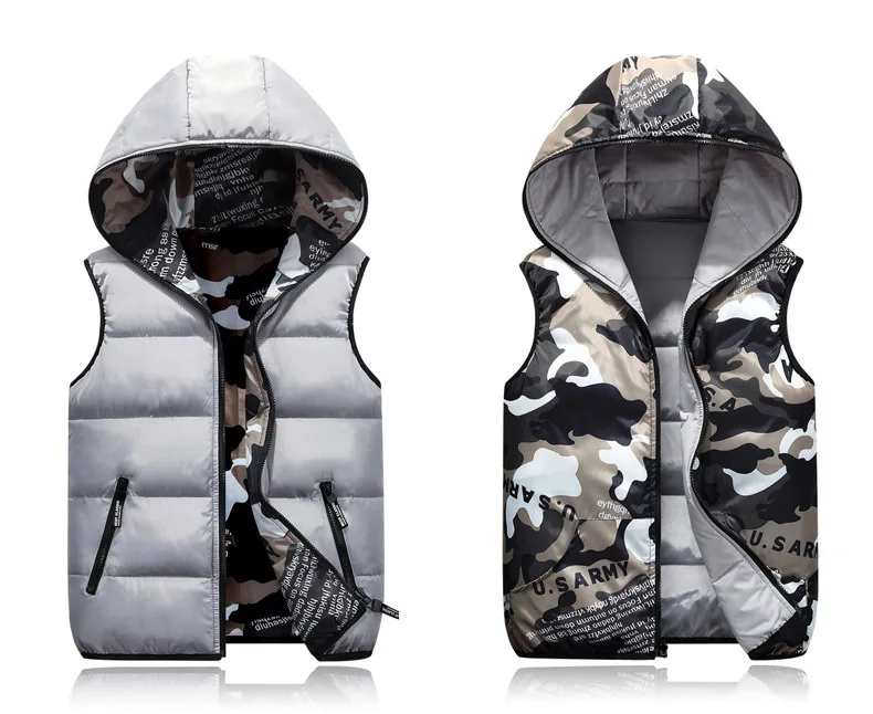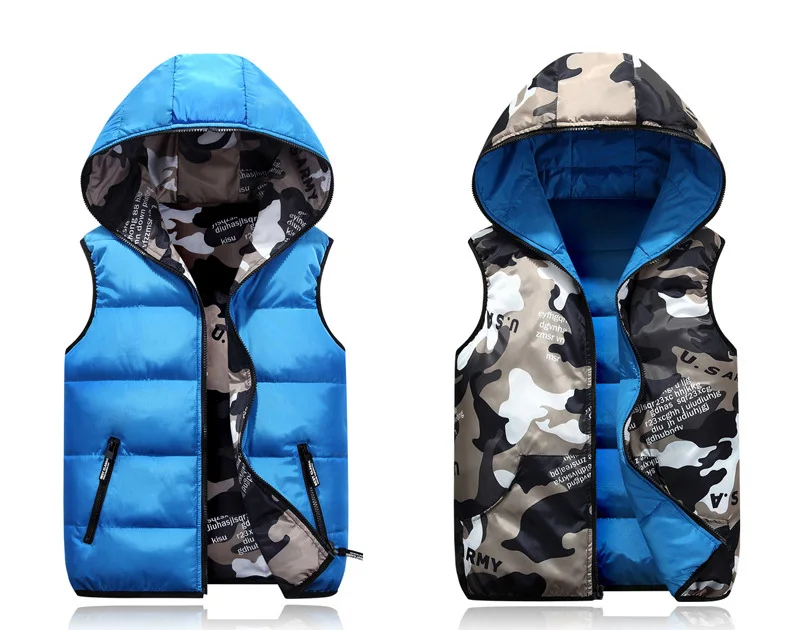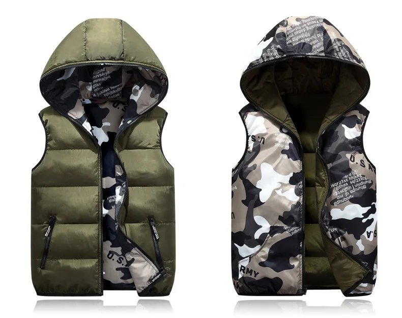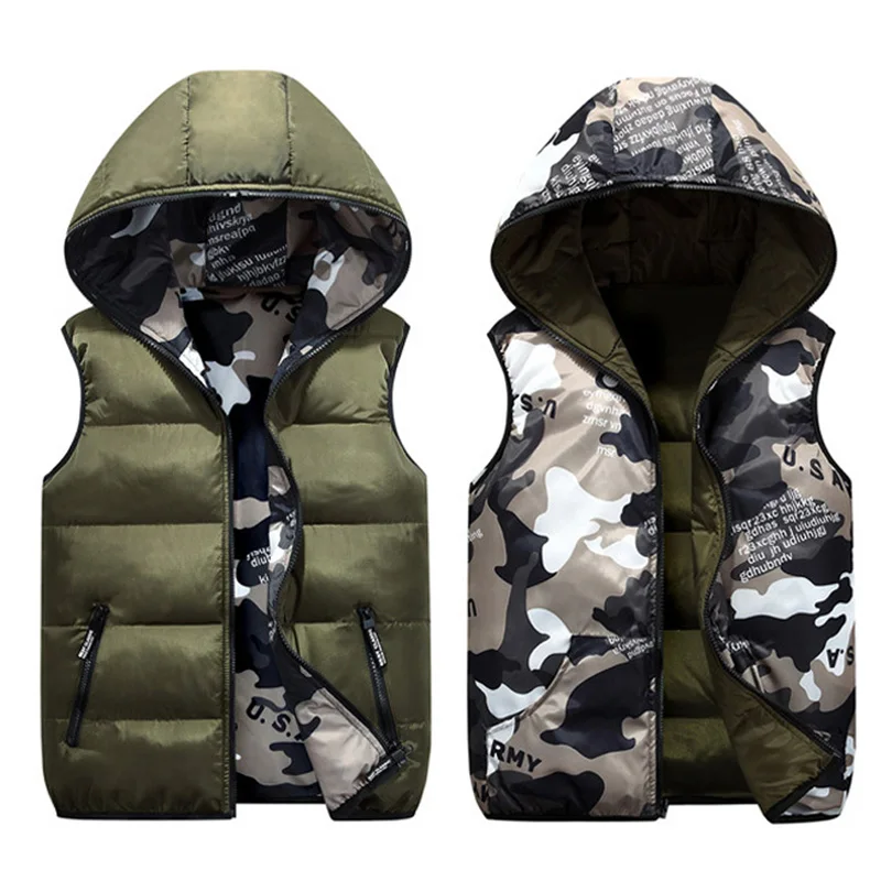 Весенне-осенний жилет для мальчиков, теплая хлопковая камуфляжная верхняя одежда с капюшоном, Детская куртка, детская одежда, пальто для мальчиков 110-170 см