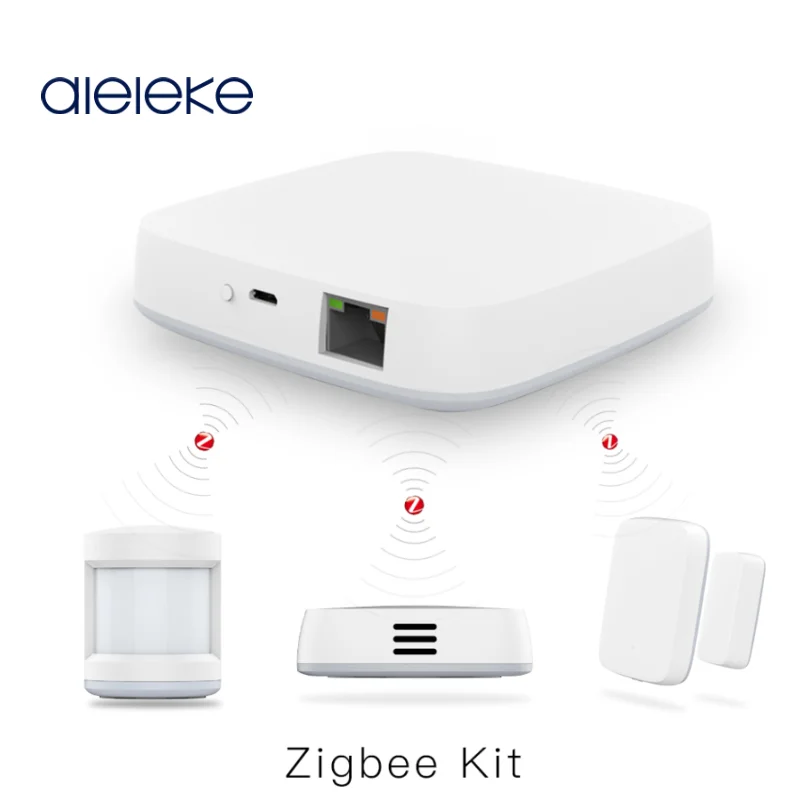 Умный домашний комплект включает умный концентратор, датчик PIR, датчик температуры и влажности, датчик двери и окна.