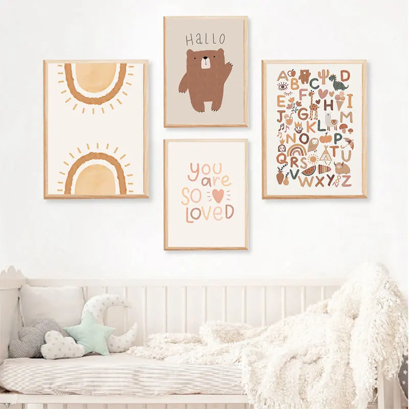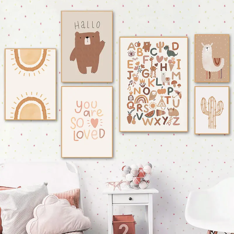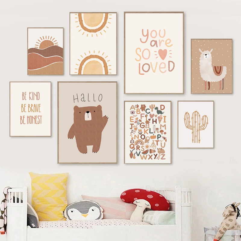 Абстрактная живопись, кактус, альпака, холст, принт радуги, постер с солнцем, детская комната, настенные художественные плакаты в стиле бохо, настенные картины, украшение для детской комнаты