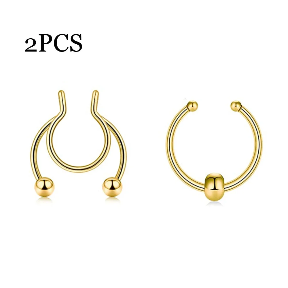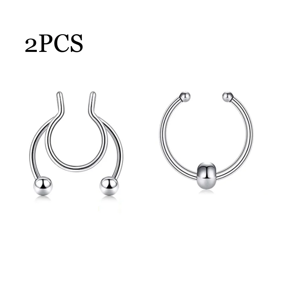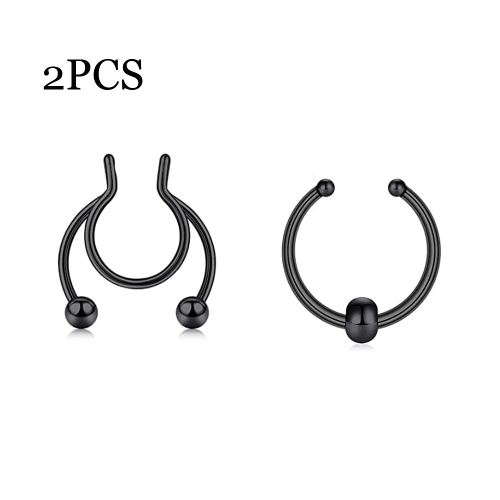 Кольцо для имитации перегородки из нержавеющей стали, клипса на носовой перегородке без прокола, ювелирное изделие для мужчин и женщин, 2 шт.