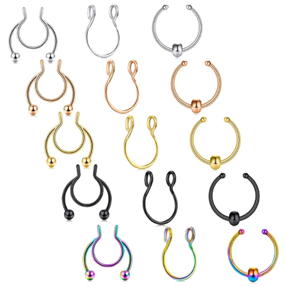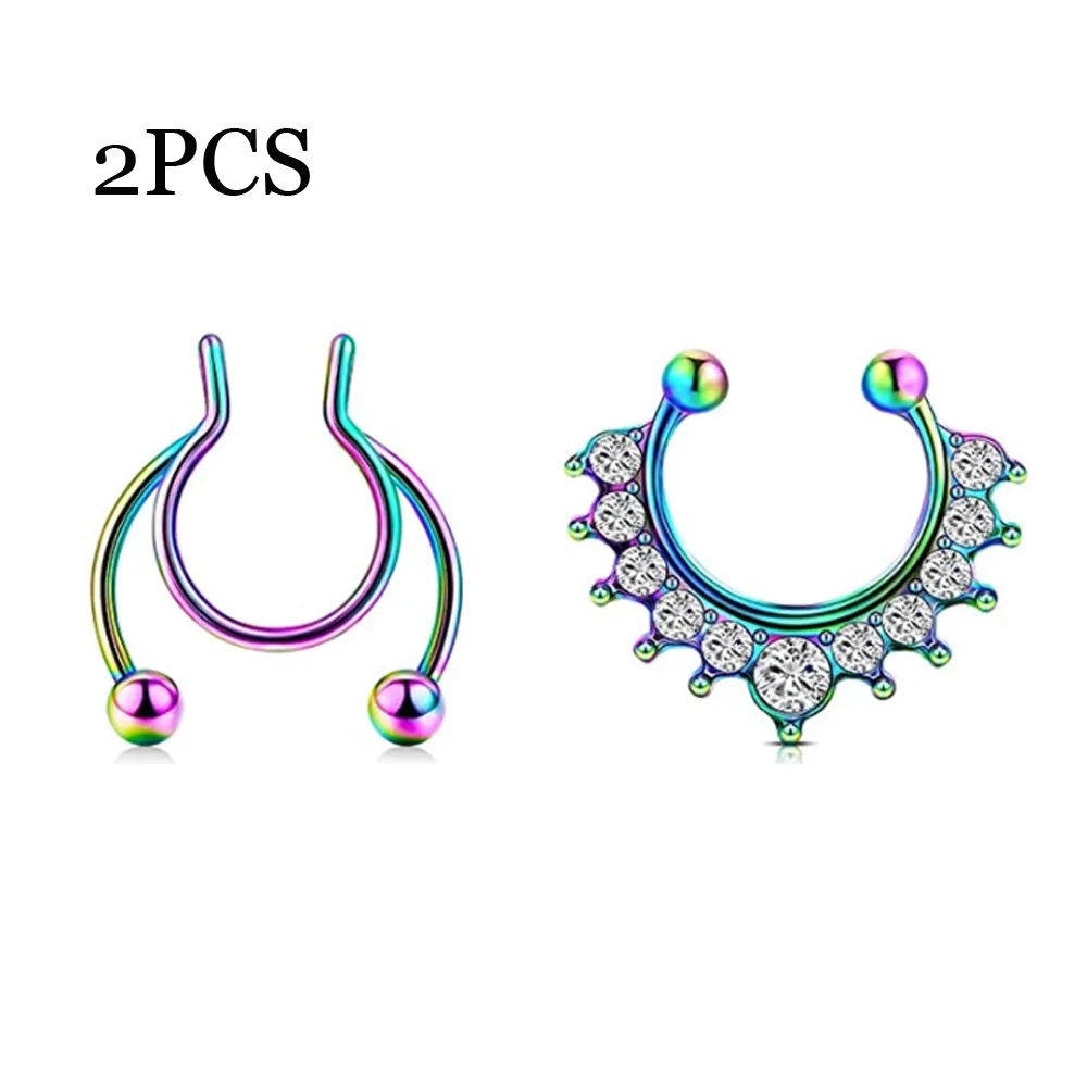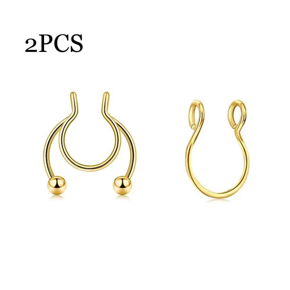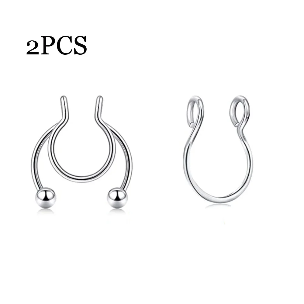 Кольцо для имитации перегородки из нержавеющей стали, клипса на носовой перегородке без прокола, ювелирное изделие для мужчин и женщин, 2 шт.