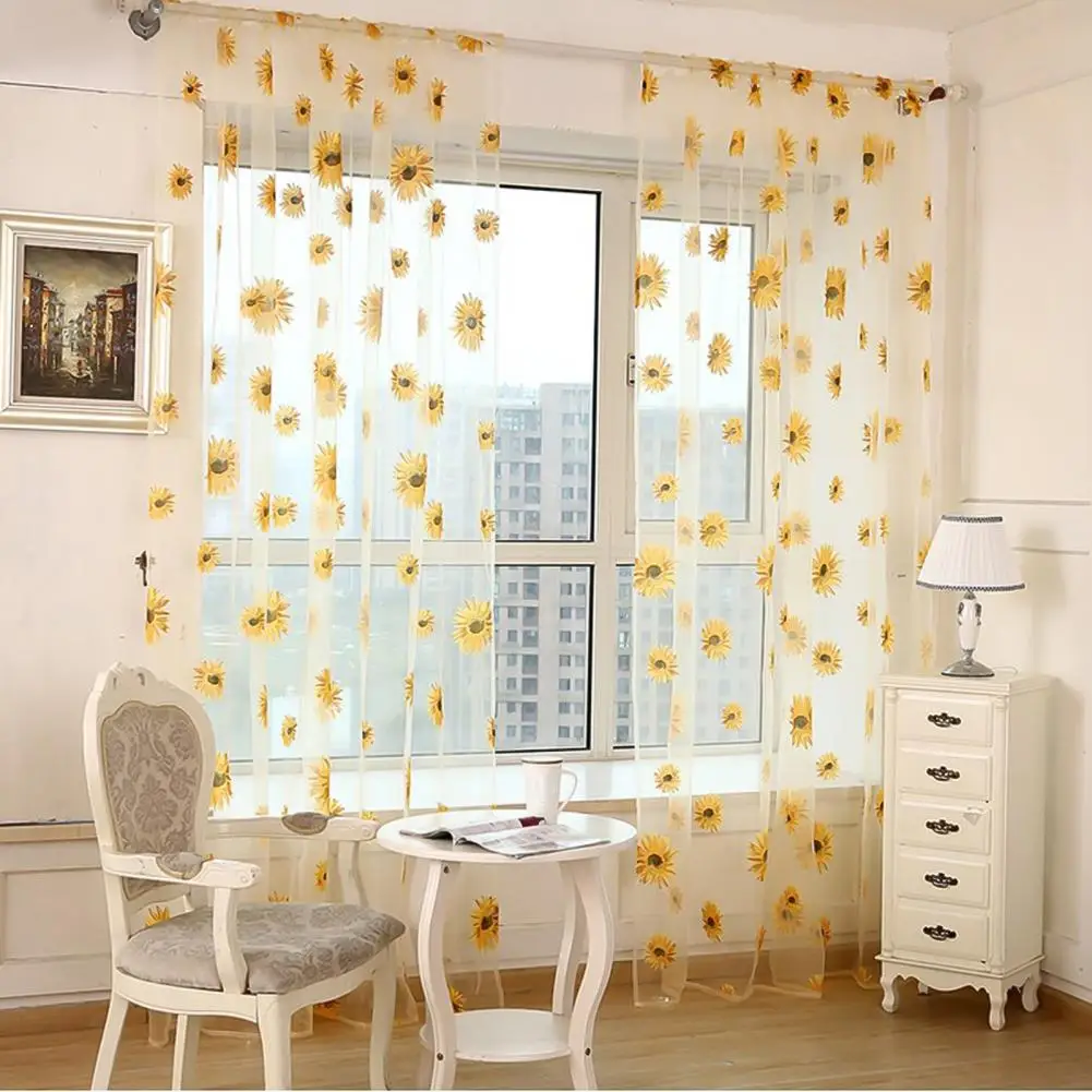Тюлевая занавеска с подсолнухом, шторка для дверей, украшение для кухни, балкона, занавеска для окна, 100*200 см100*270 см