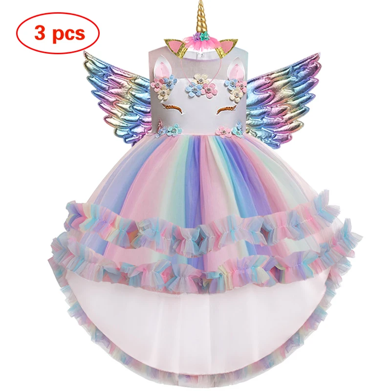 Платье с цветочным узором для девочек единорог радуга свадебная вечеринка платье летние платья для девочек, на день рождения вечеринка единорога роль танцевальное платье для сцены; Комплект От 3 до 14 лет