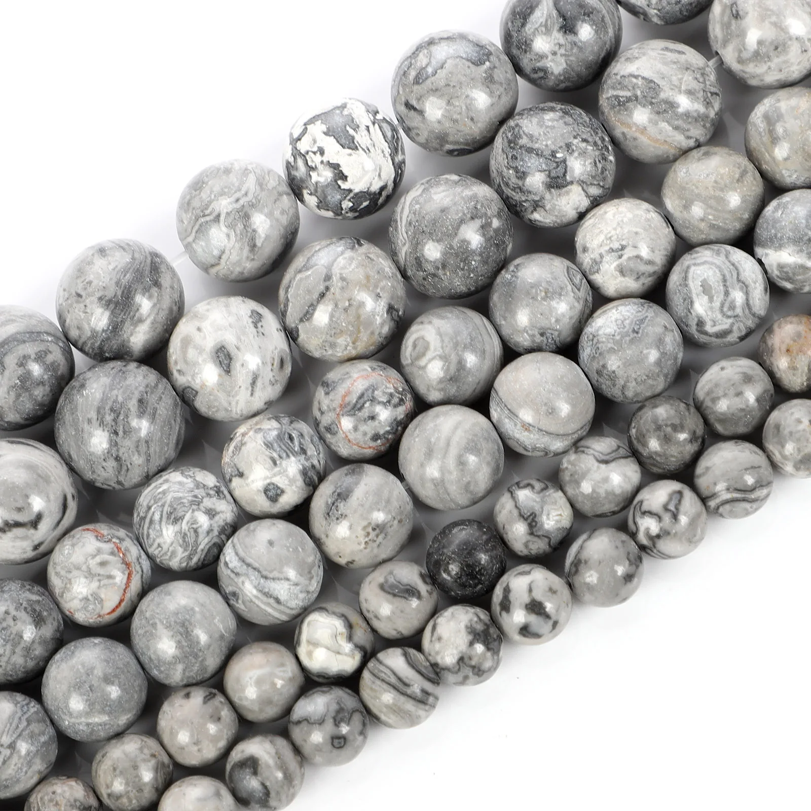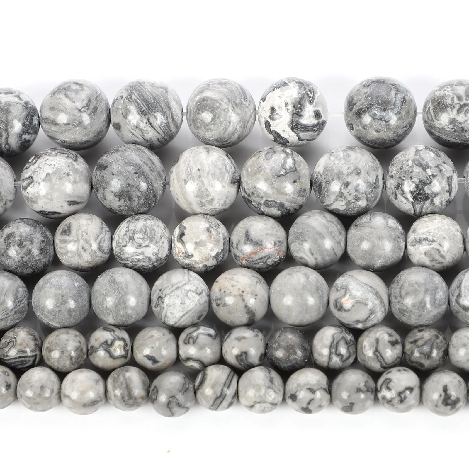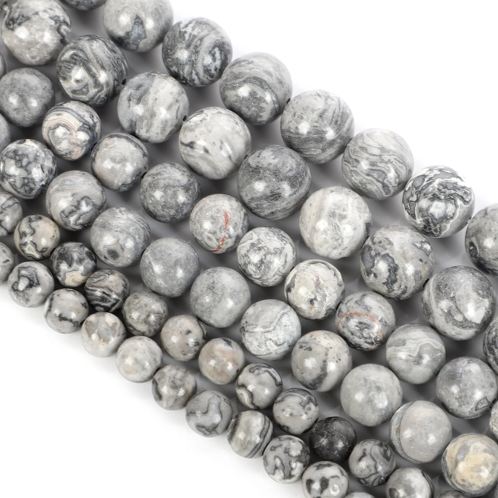 Бусины из натурального камня, серые бусины с картой для изготовления ювелирных изделий, рукоделия, браслетов, нитка 4-12 мм