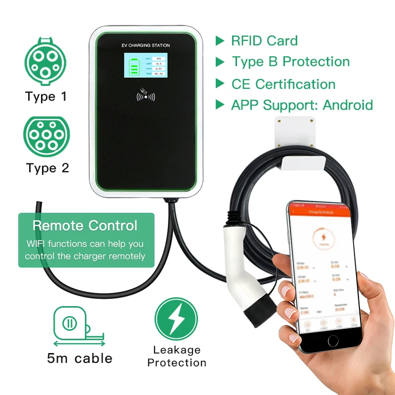 16A 1 фаза EVSE Wallbox EV зарядное устройство электромобиль зарядная станция с кабелем типа 1/2 IEC 62196-2 для Audi MINI Cooper Smart