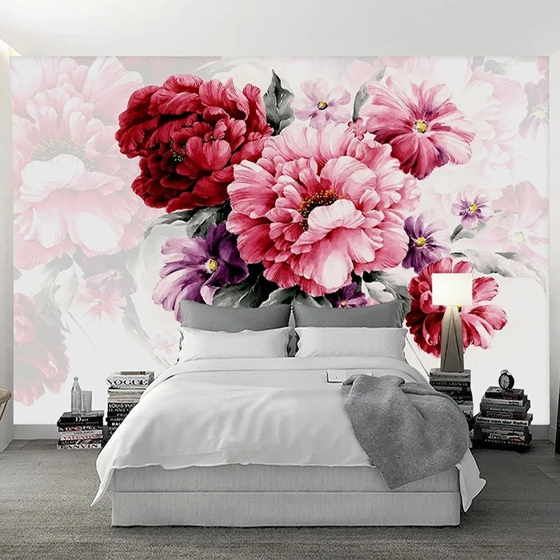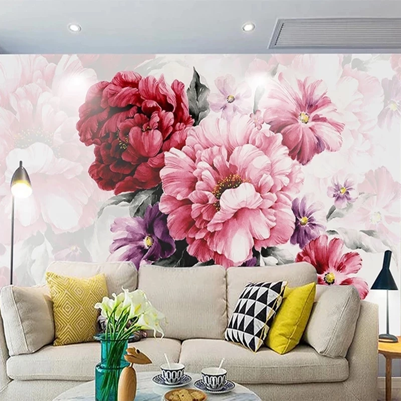 Самоклеящиеся обои на заказ, 3d-акварель, ручная роспись, цветок, современная модная Водонепроницаемая декоративная ткань для гостиной, телевизора, дивана, спальни
