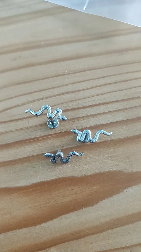 красивые змейки, аккуратные, но имейте в виду, что 6 мм очень большие для мочки уха, не подойдет, будет цеплять. в хрящ будет ок