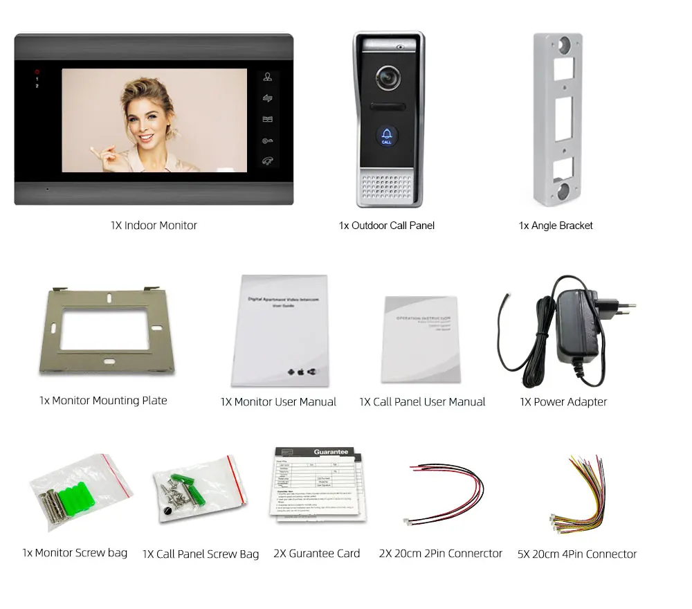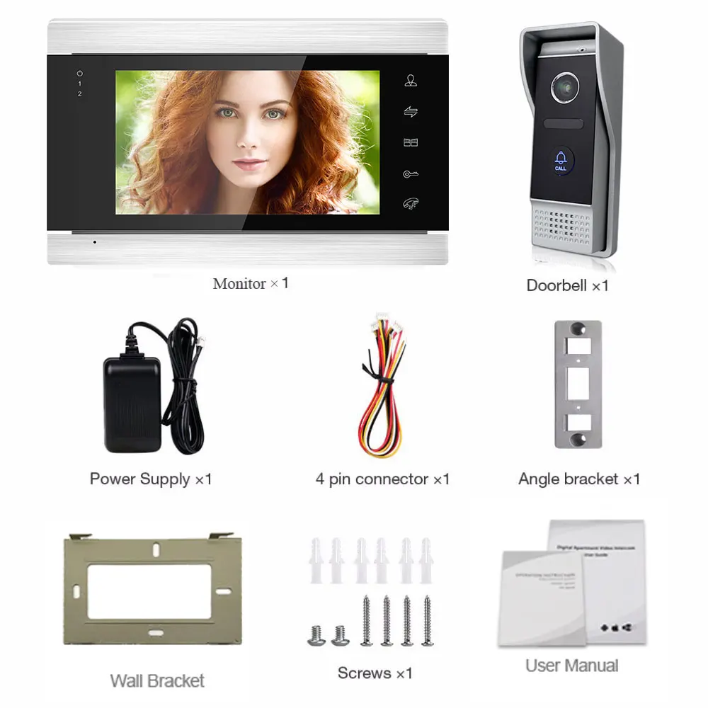 Обратите внимание, что система видеодомофона Wi-Fi не означает, что вам не нужен провод. Монитор поддерживает беспроводное подключение к Wi-Fi, но внутренний монитор и дверной звонок проводной, что гарантирует питание, видео работает стабильно, и вы можете увеличить расстояние