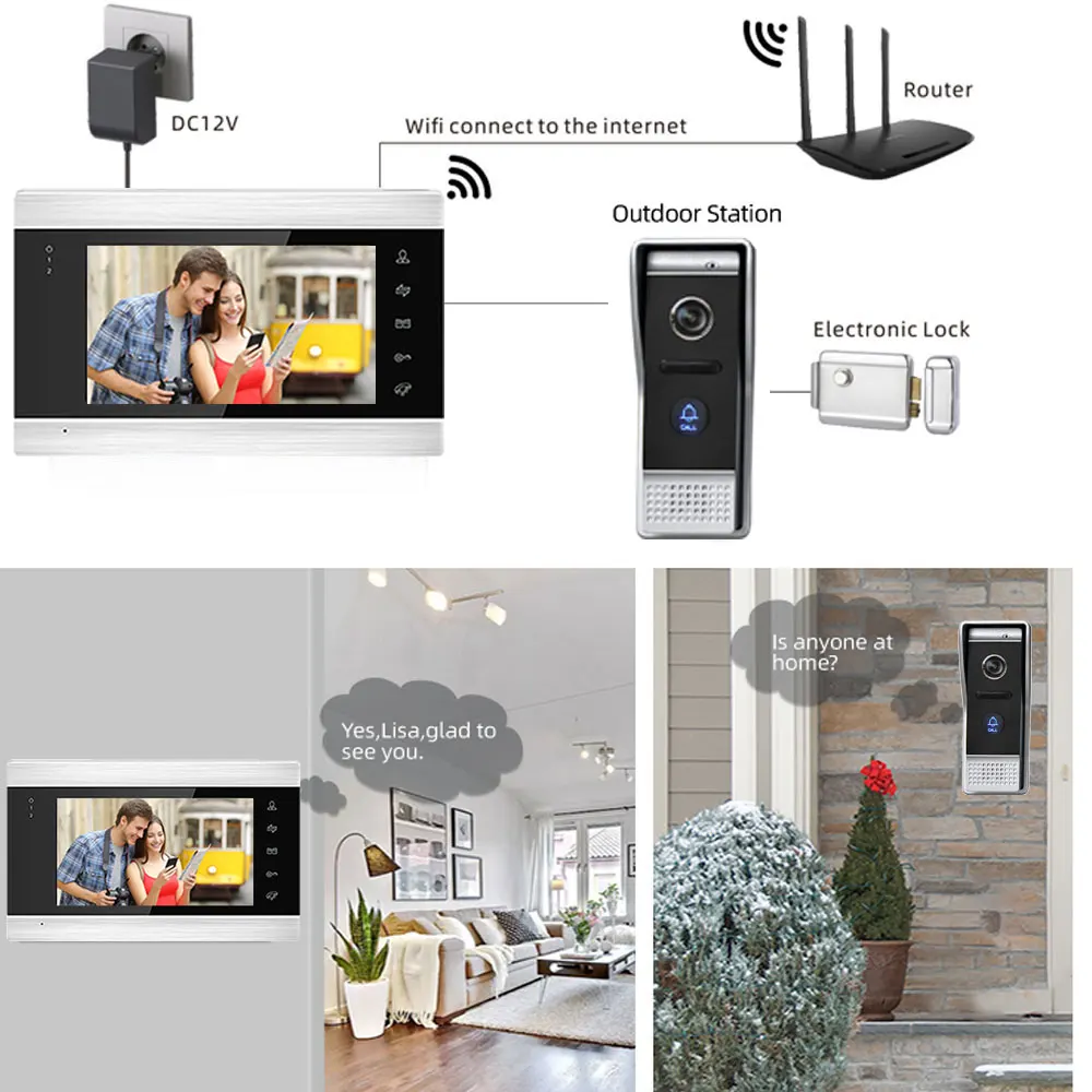 Беспроводной Wi-Fi умный видеодомофон 7 дюймов система внутренней связи с блокировкой ID-карты проводной дверной звонок HD ИК-камера дистанционная разблокировка