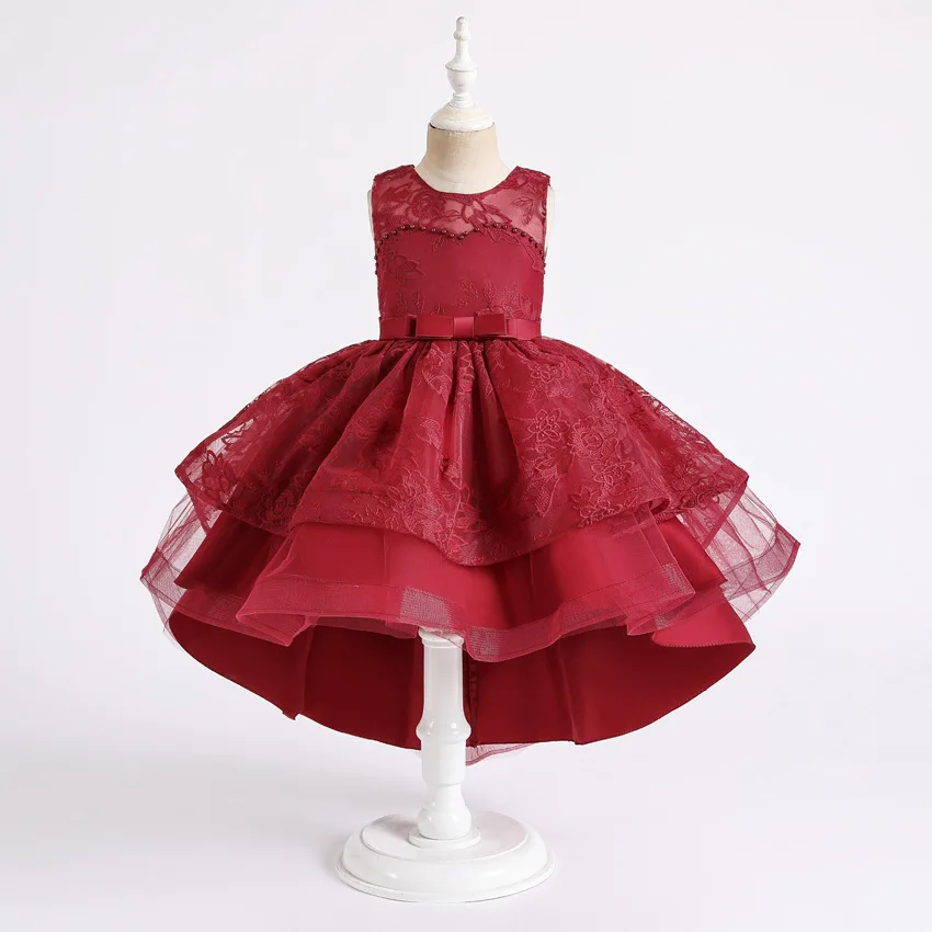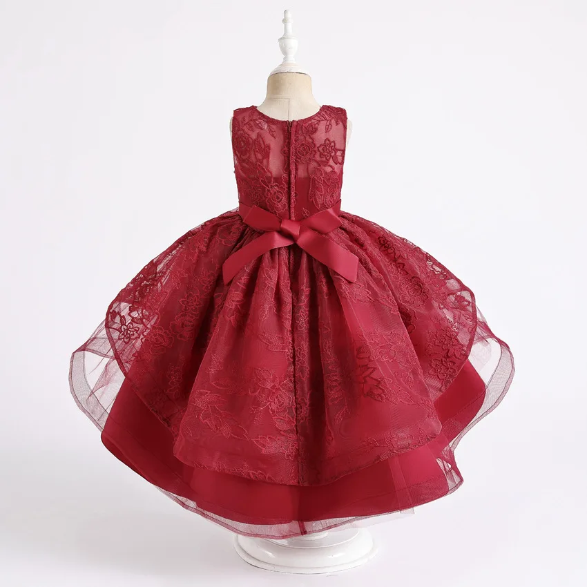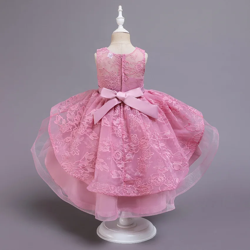 От 3 до 12 лет летние платья для детей, для девочек, с бусинами со шлейфом платье принцессы для девочек, кружевное платье с цветочным узором для девочек на день рождения свадебная вечеринка платье