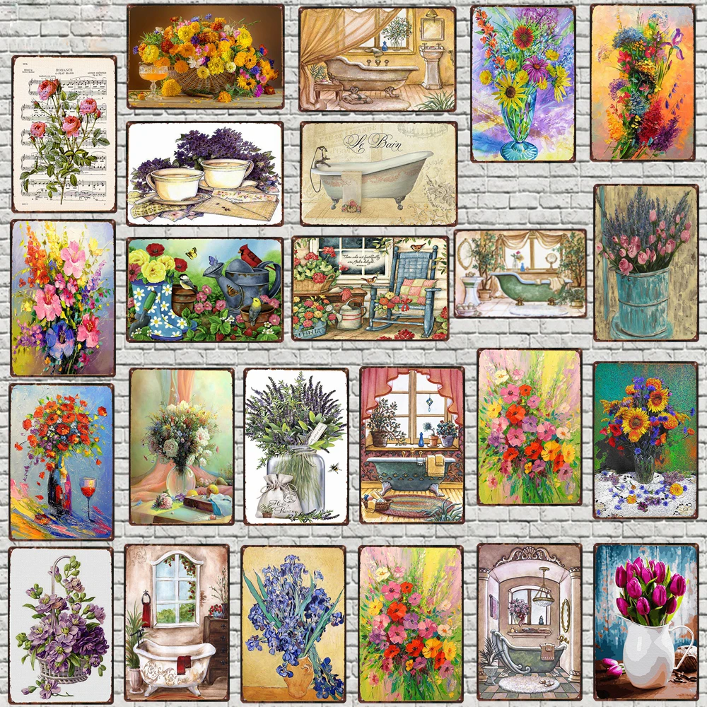 Красочная ваза, цветы, металлическая табличка, Ретро стиль, декор для ванной комнаты, кафе, клуба, бара, Жестяная Табличка, садовая Лаванда, настенное искусство, пасторальное украшение для дома