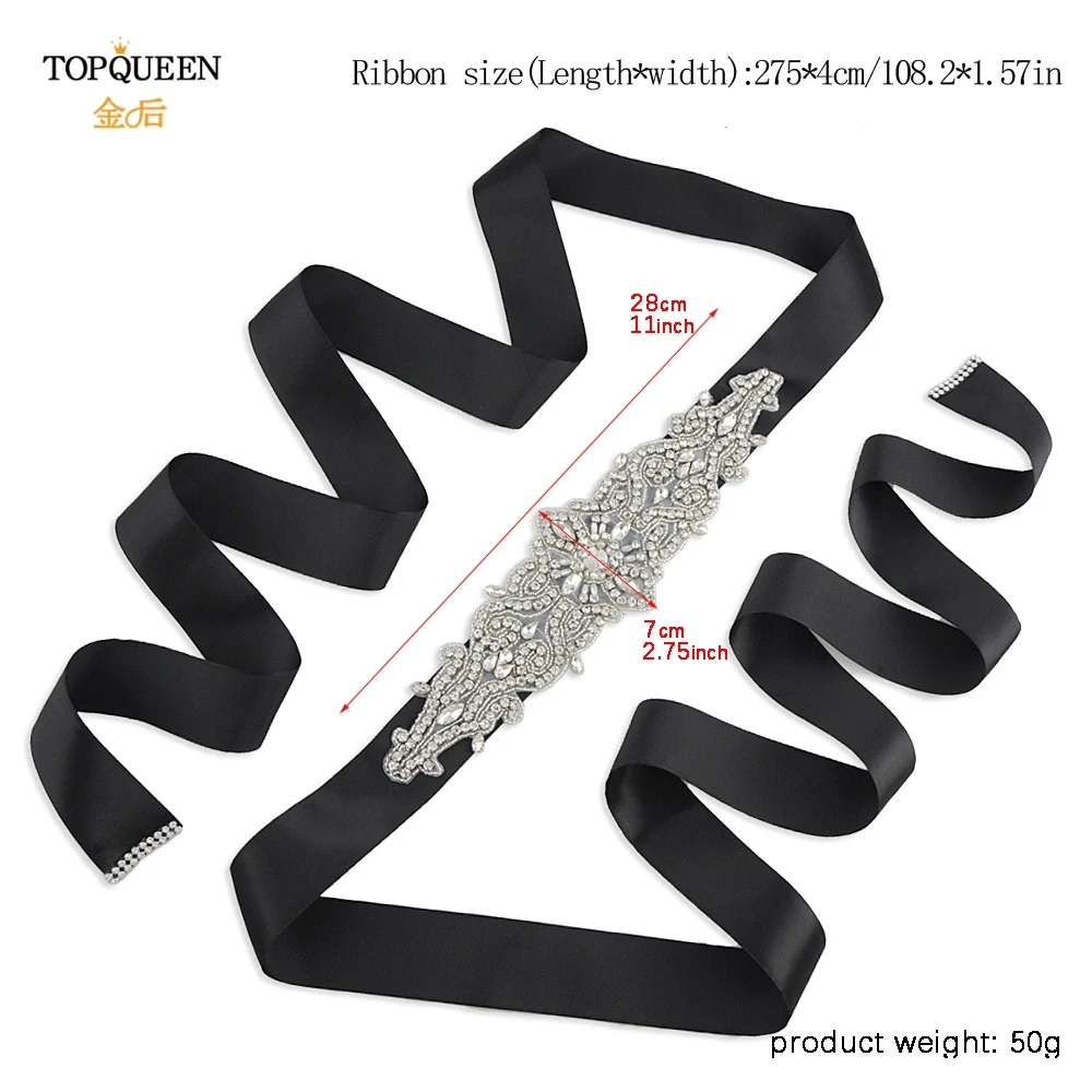 TOPQUEEN S26 ремни свадебного платья Серебряные стразы свадебные подружки невесты пояс Женские аксессуары широкая аппликация для вечернего платья