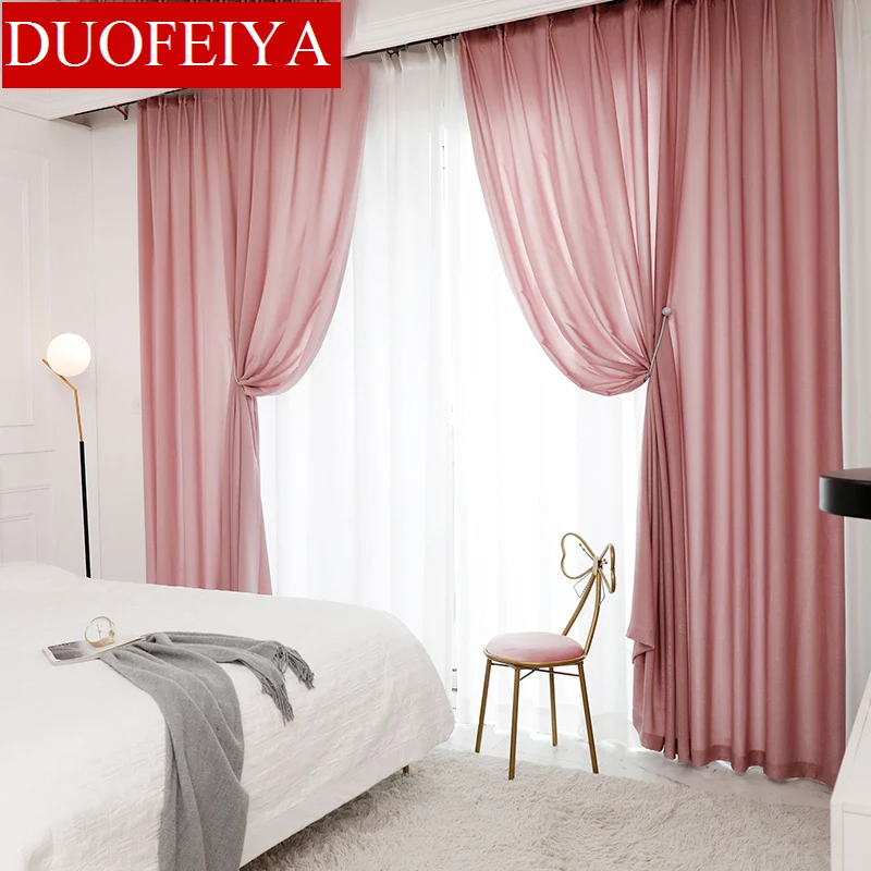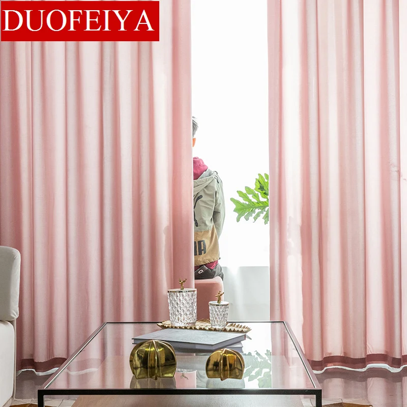 Однотонные полураздавленные розовые прозрачные шторы для спальни, девушек, гостиной, вуаль, тюлевые шторы, оконные шторы, вечерние занавески