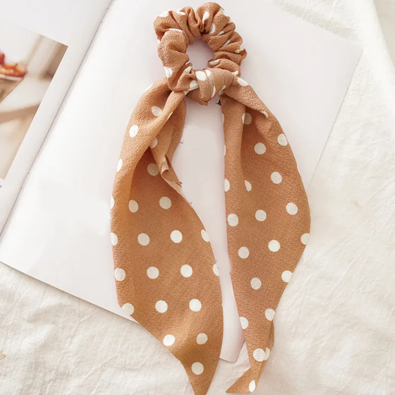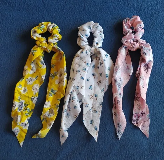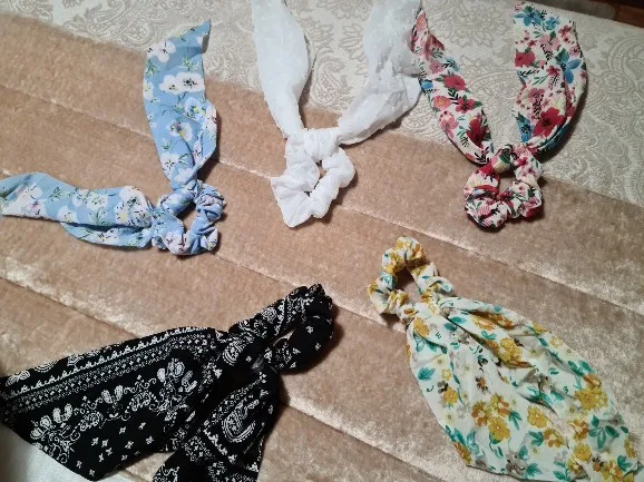Резинка для волос с цветочным принтом, однотонная лента для Женский хвостик, шарф, атласные шелковые эластичные резинки для волос, аксессуары для волос