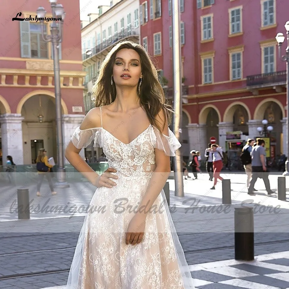 Винтажное кружевное свадебное платье цвета шампанского, свадебное платье в стиле бохо 2021, свадебное платье с глубоким V-образным вырезом, сексуальные тюлевые пляжные свадебные платья, свадебное платье es