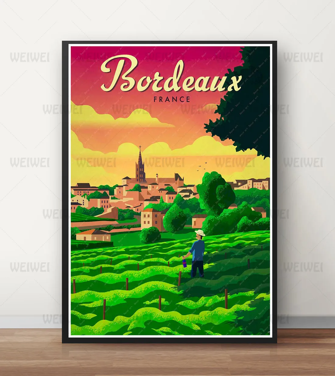 Винтажные художественные плакаты с покрытием во Франции, Бордо, винная страна, путешествия, город, картины на холсте, настенная фотокартина, Декор для дома, подарок