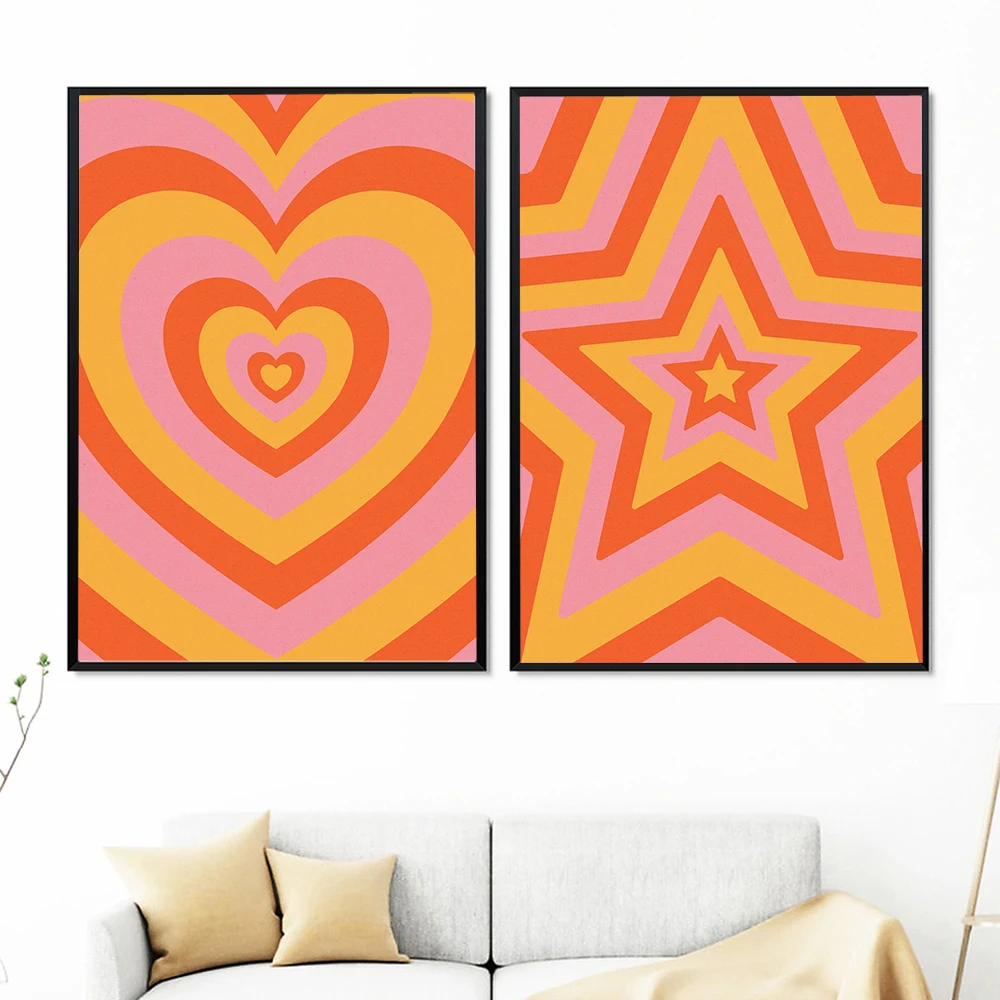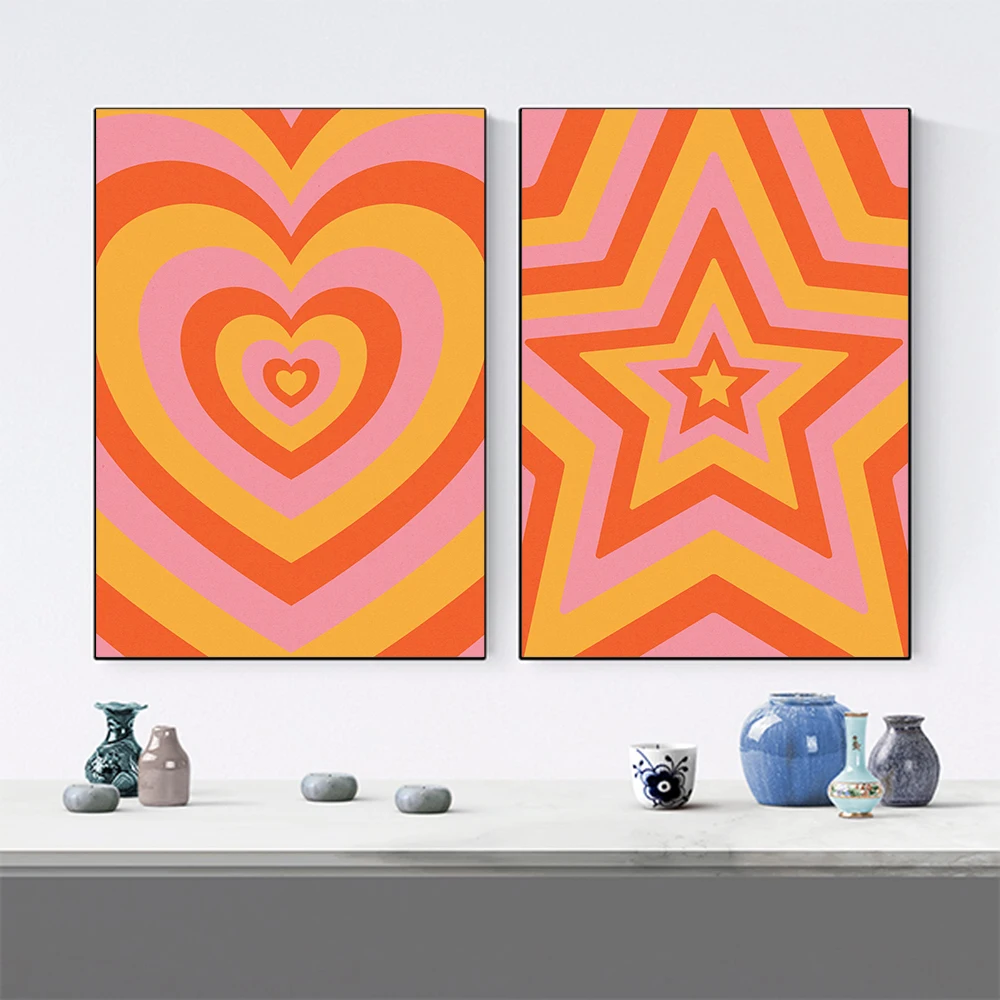 Ретро плакаты и принты 60s 70s психоделический веселый сердец Картина на холсте поп настенные картины для гостиной украшение для дома