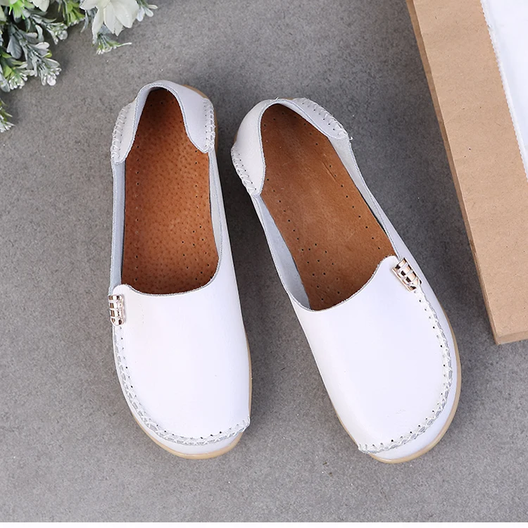 Женская обувь на плоской подошве; Коллекция 2021 года; Сезон лето; Женская обувь из натуральной кожи; Лоферы размера плюс 35-42; Женская однотонная повседневная кожаная обувь на плоской подошве; Женская обувь