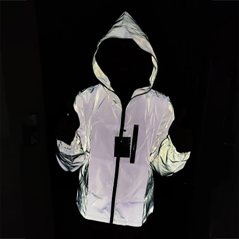 Светоотражающая куртка для мужчин мальчиков светильник толстовки женские куртки в стиле хип-хоп Водонепроницаемый ветровка с капюшоном; Верхняя одежда в уличном стиле для пар Человек негабаритных пальто