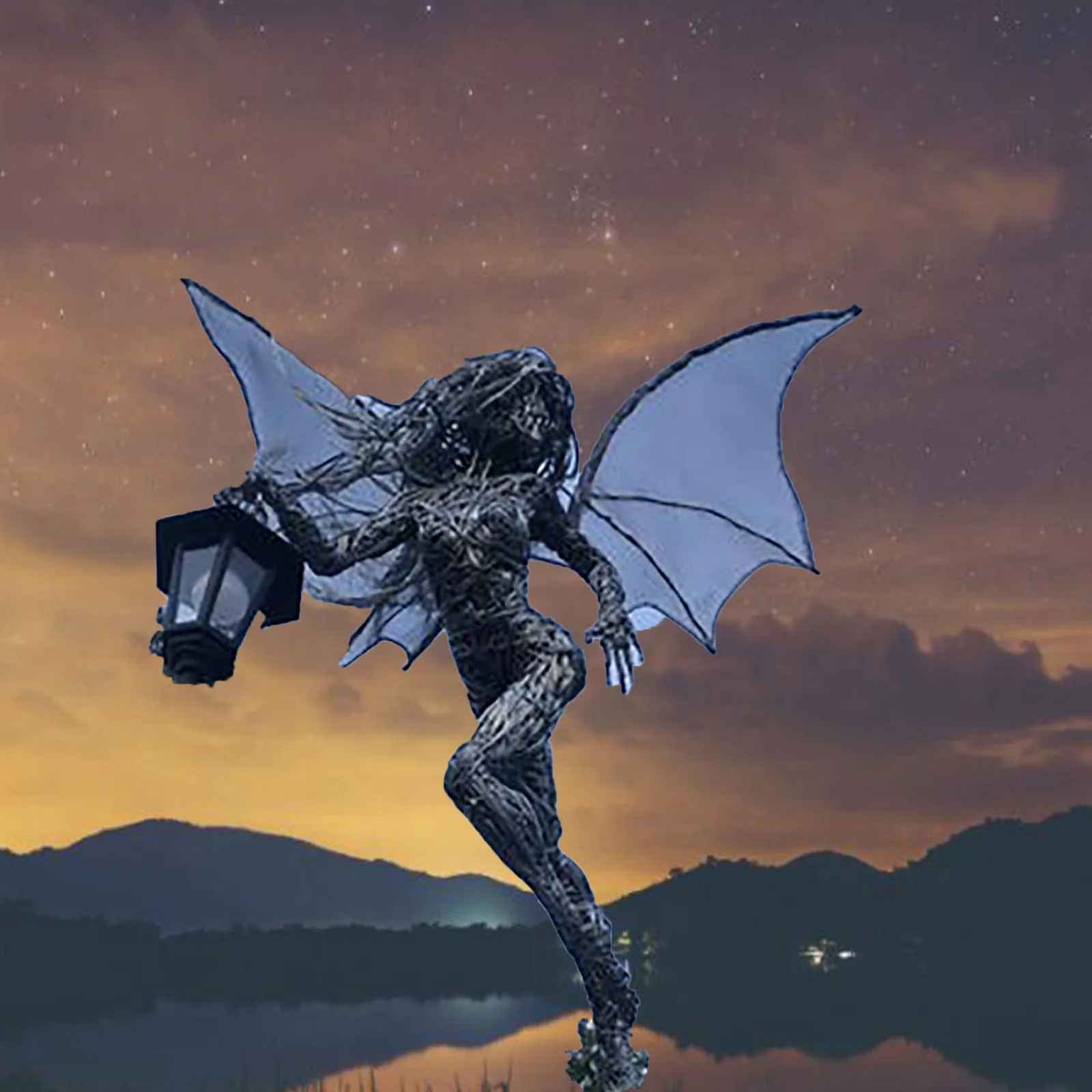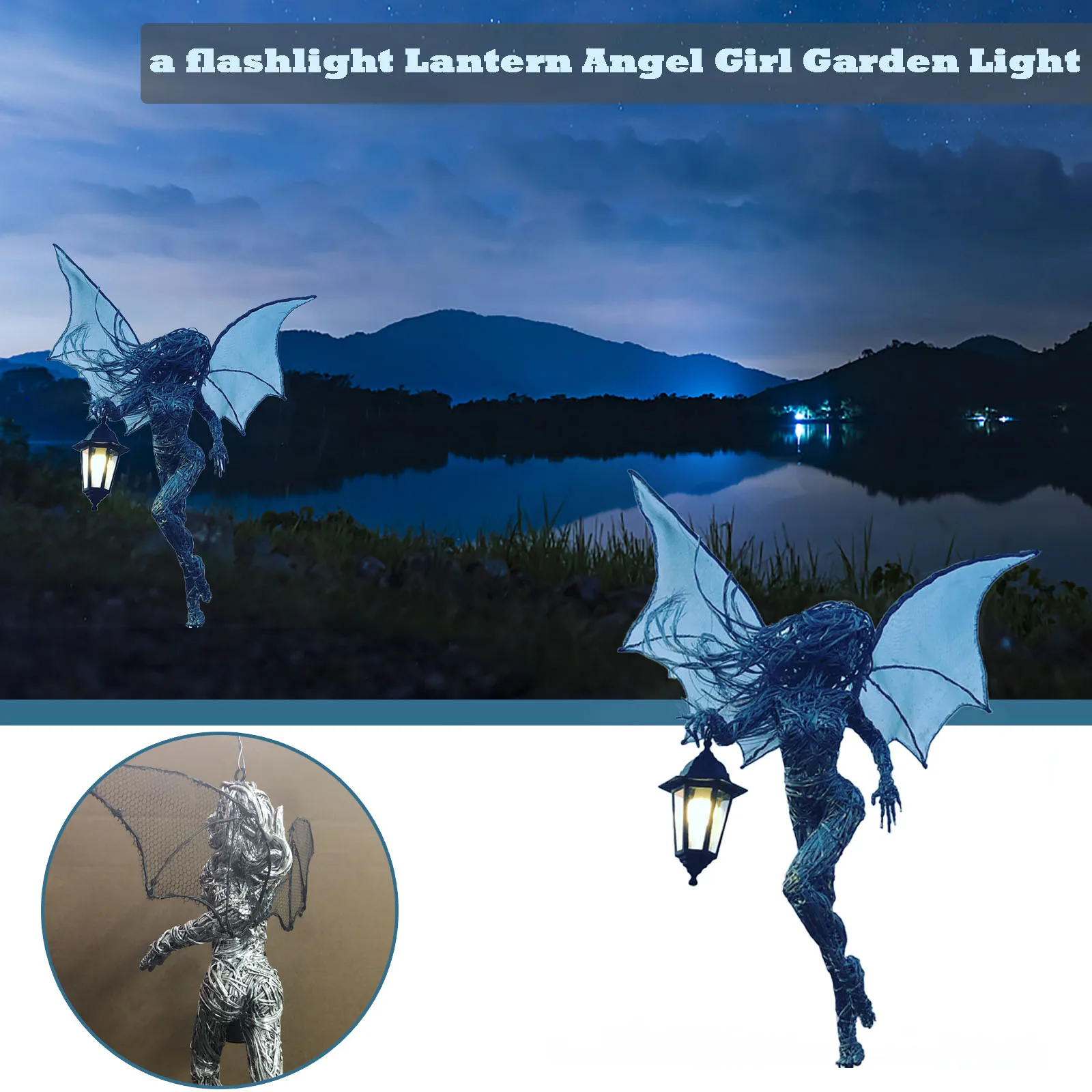 Садовая скульптура ангела, эльф, со вспышкой, фонарик, девушка-ангел, садовый светильник, эльф из смолы, украшение для двора Ландшафтные изделия # T2G