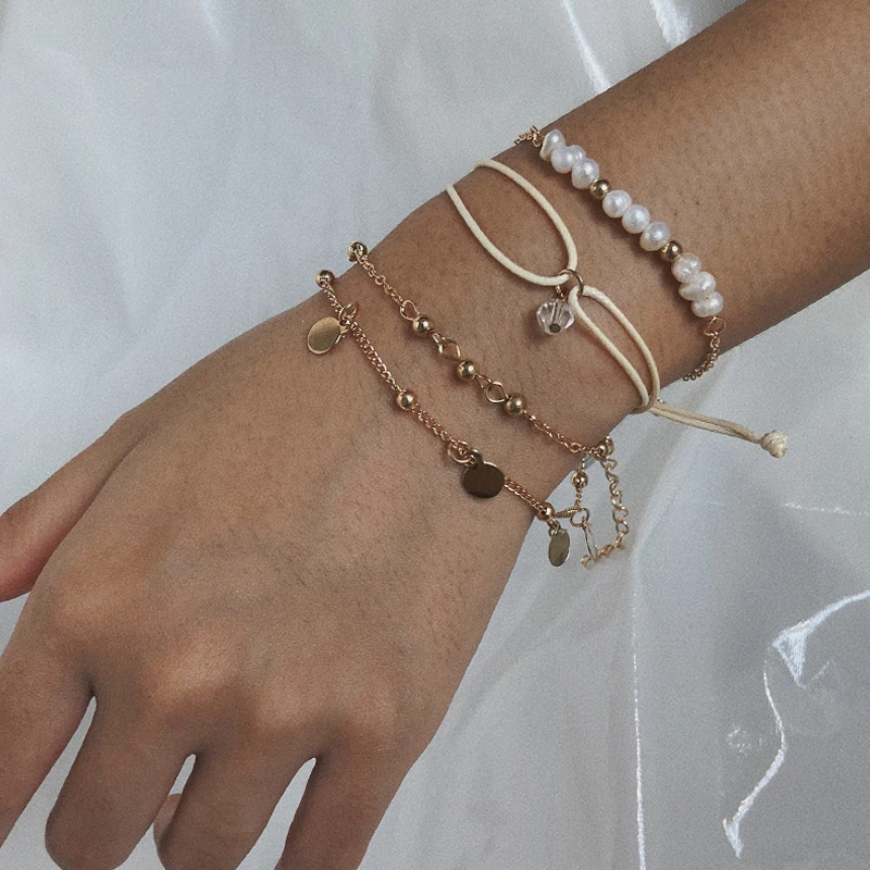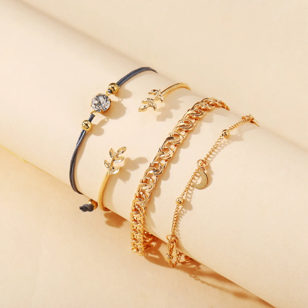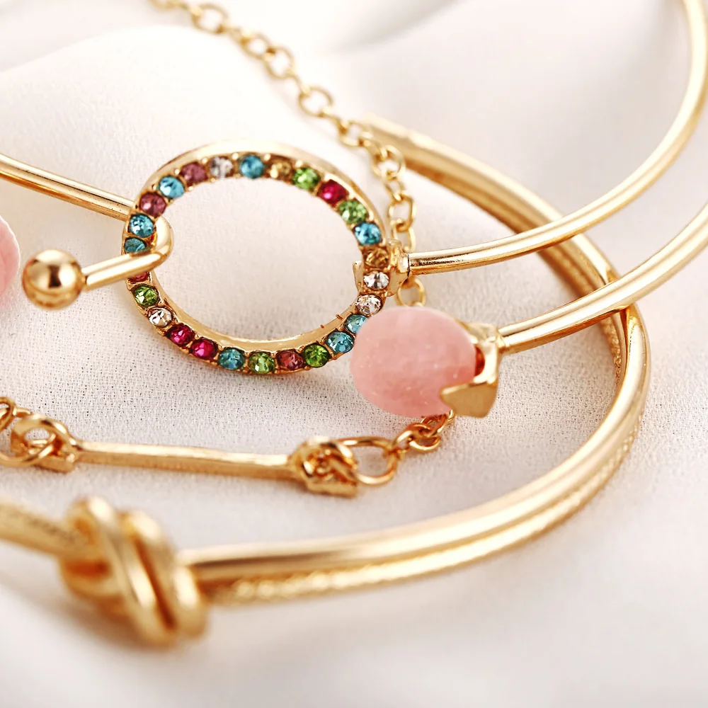 Набор браслетов-цепочек с золотым камнем в богемном стиле для женщин и девушек, модные геометрические браслеты с узлом и бусинами, браслет в стиле панк, ювелирные изделия