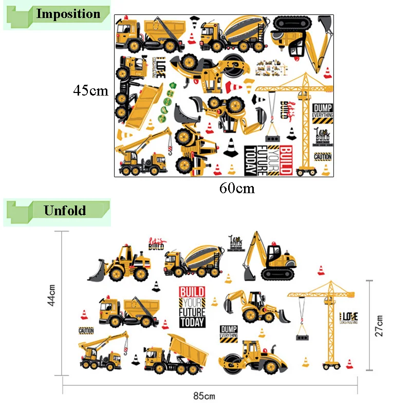 44x85 см, строительная техника, Наклейки на стены, детский домашний...
