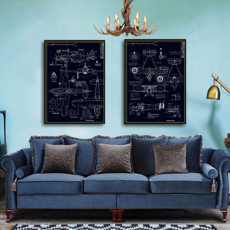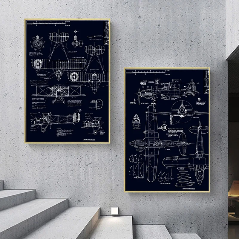Винтаж рисунки драгоценные истребителей пустая белая Скандинавская Картина на холсте Печать плакатов настенные картины Гостиная домашний декор