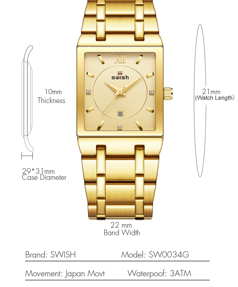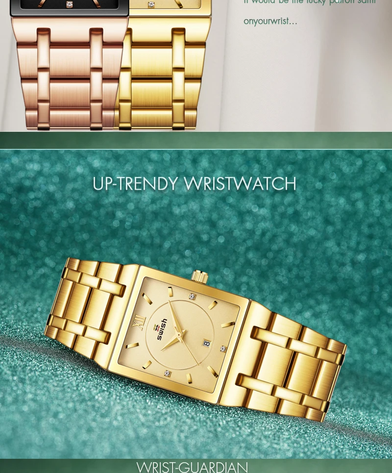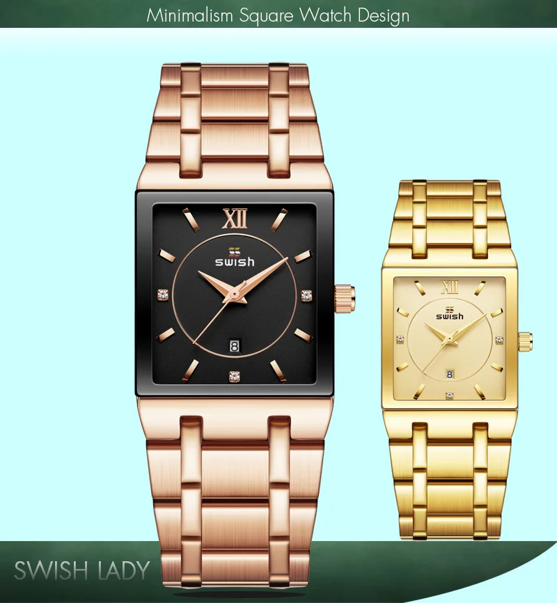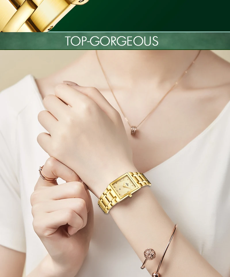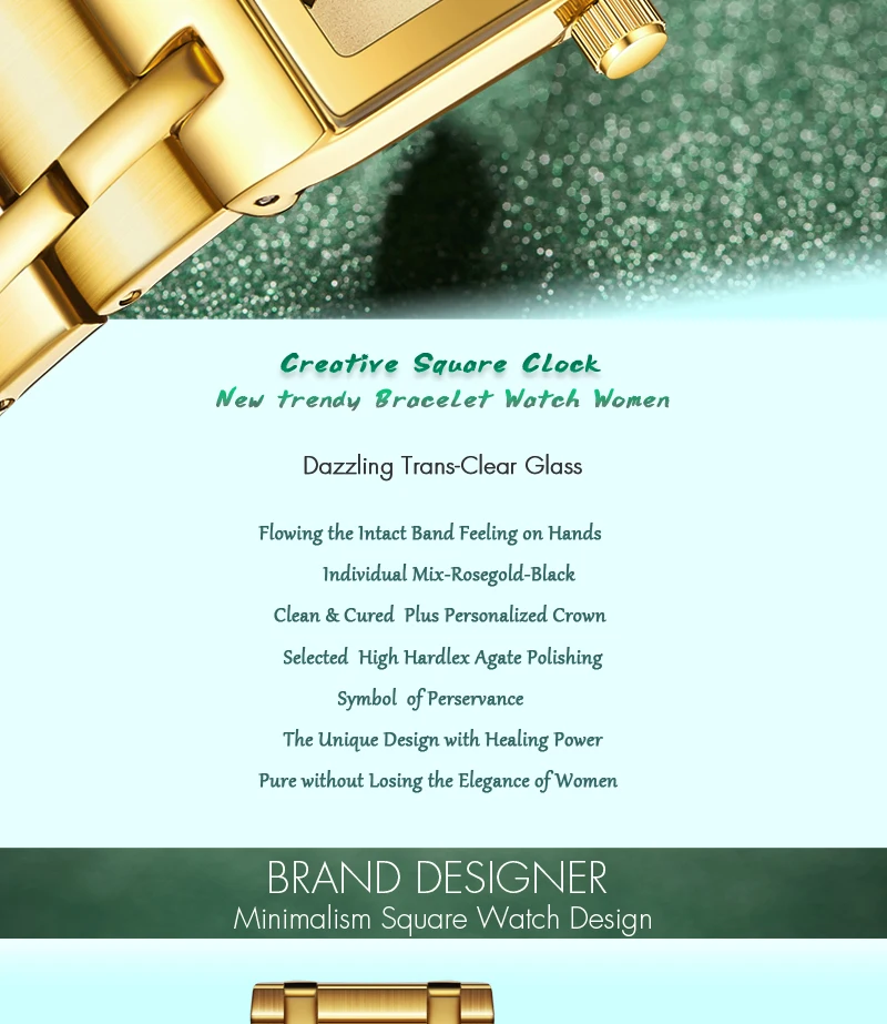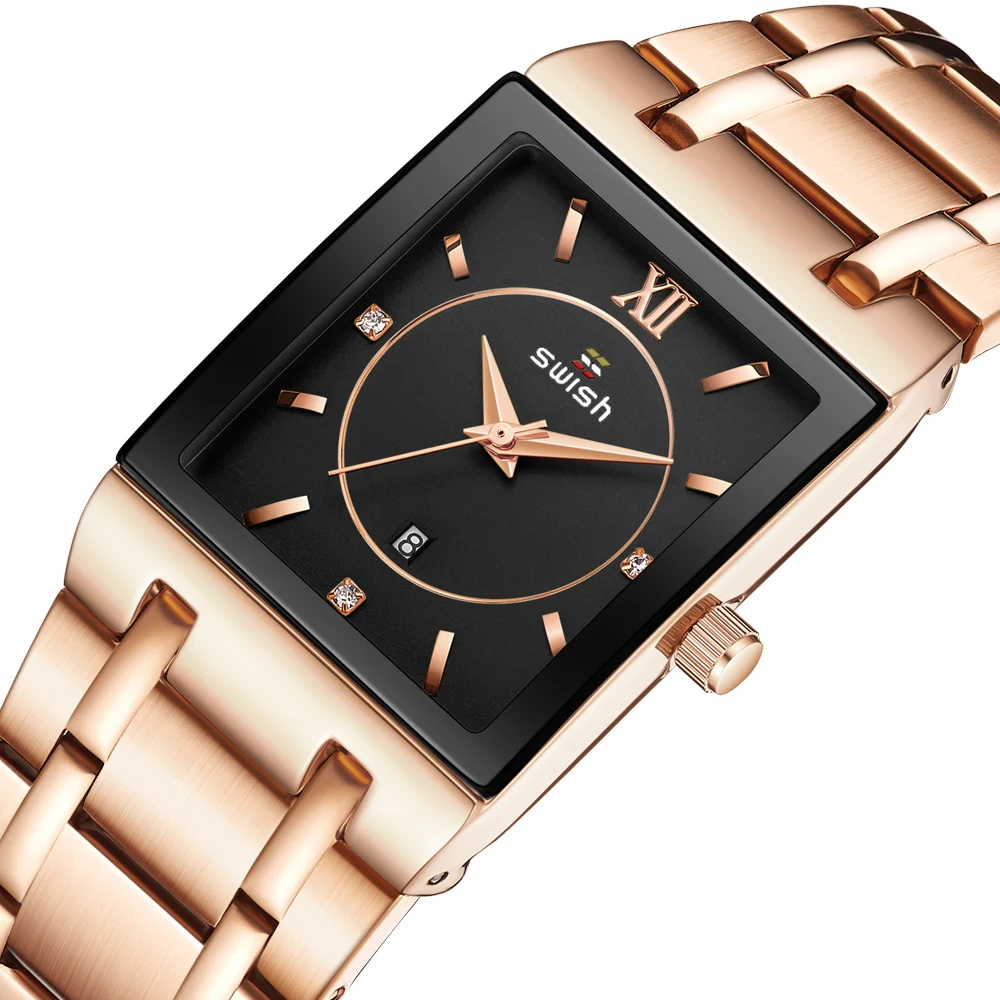 Часы женские, квадратные кварцевые, браслет из розового золота