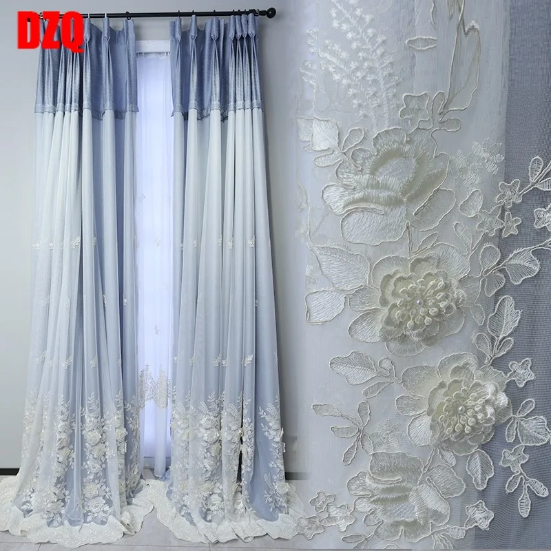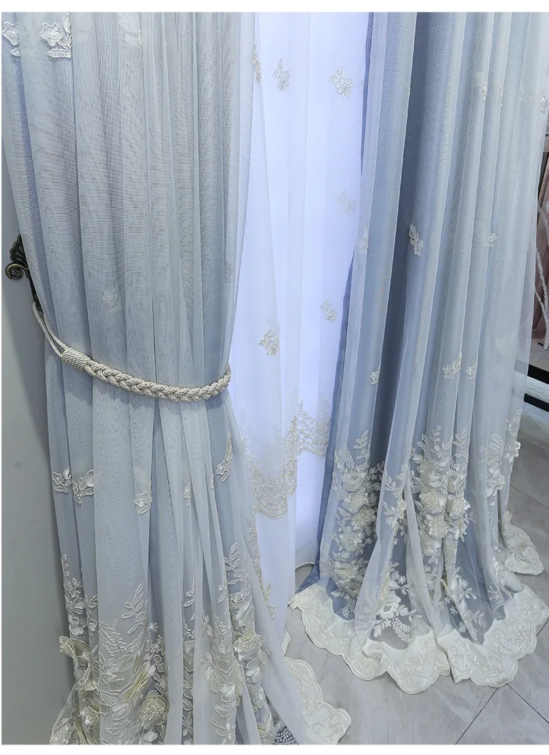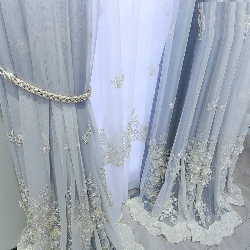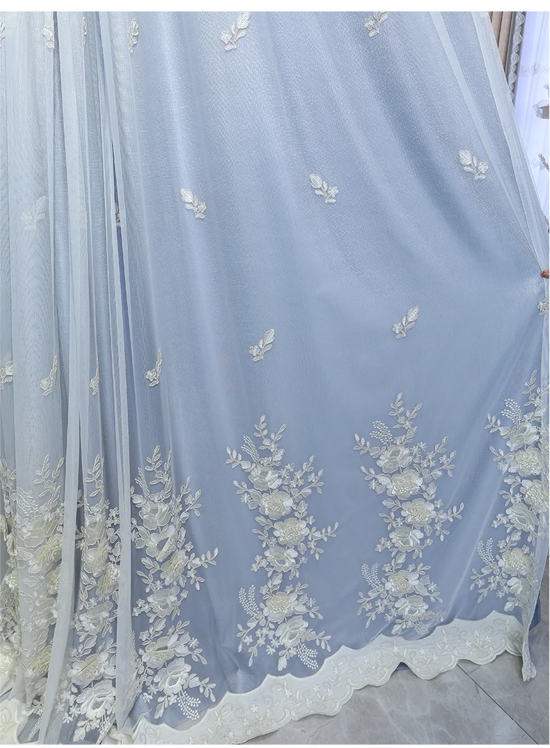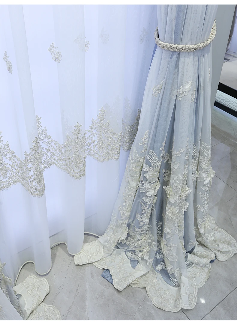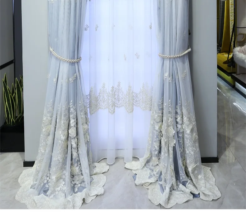 Романтическая французская Роскошная шторка для спальни, для девочек, принцесс, шторка для окон, пряжа для вышивки, светло-голубая сетка, красная занавеска на заказ