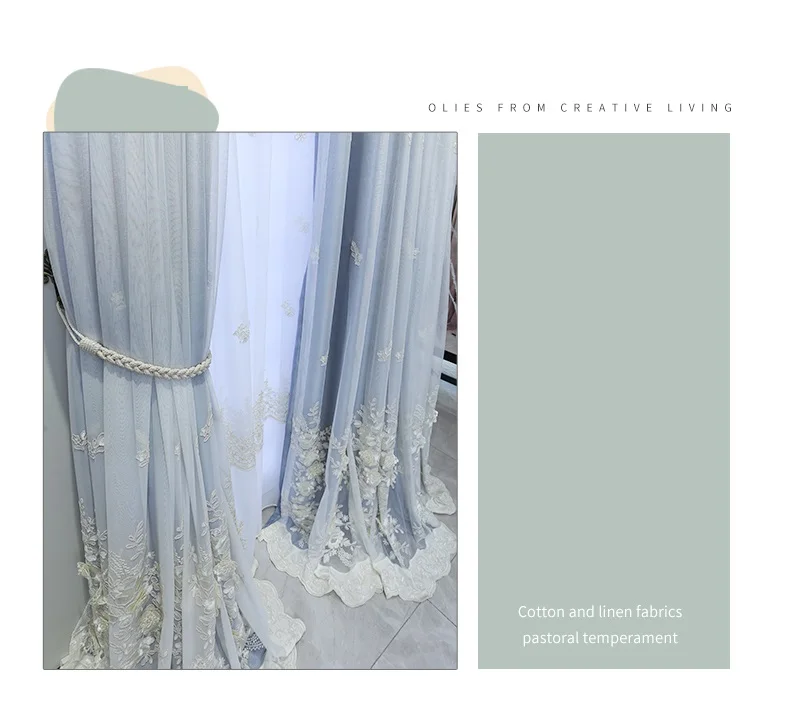 Штора с вышивкой, легкая, в европейском простом Европейском стиле, ...