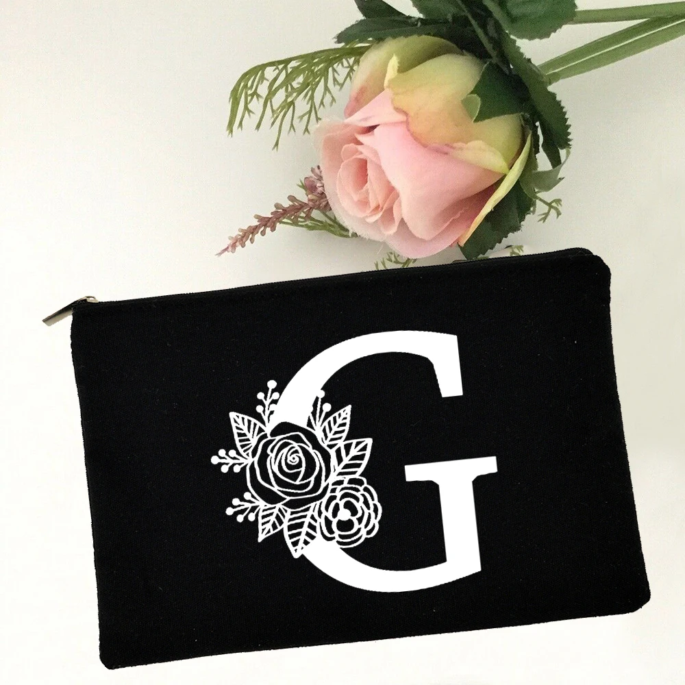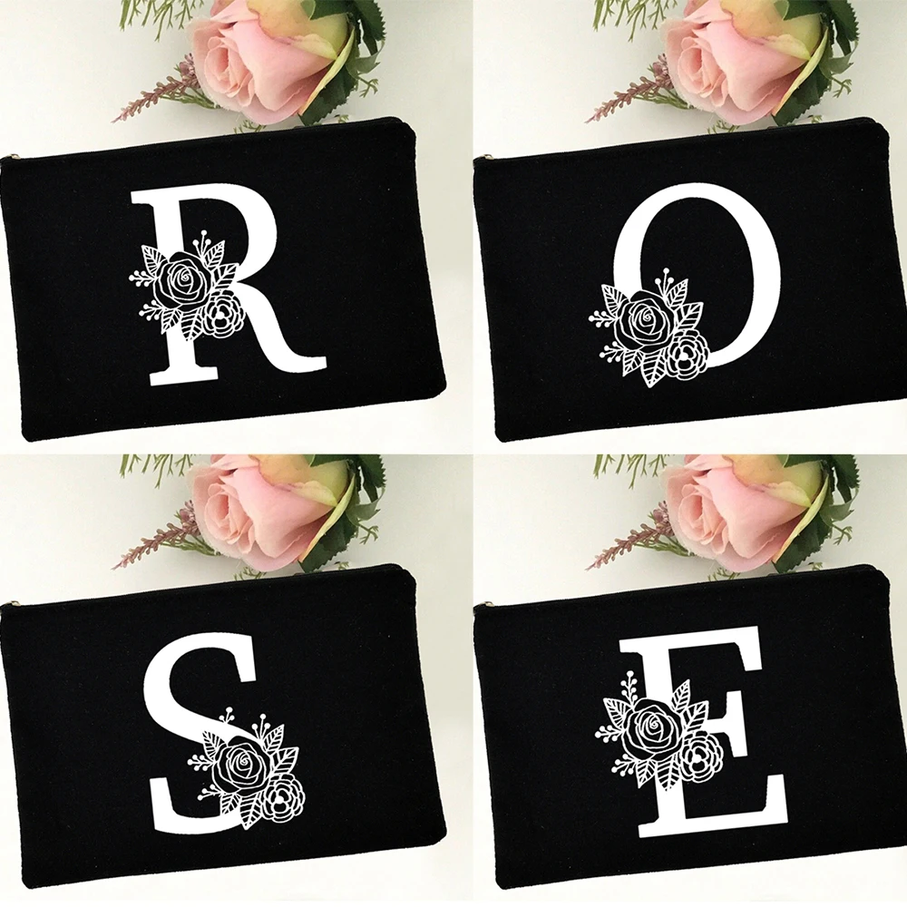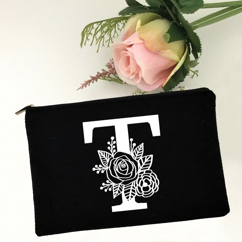 Косметички с цветочным принтом и алфавитом, модные холщовые черные ...