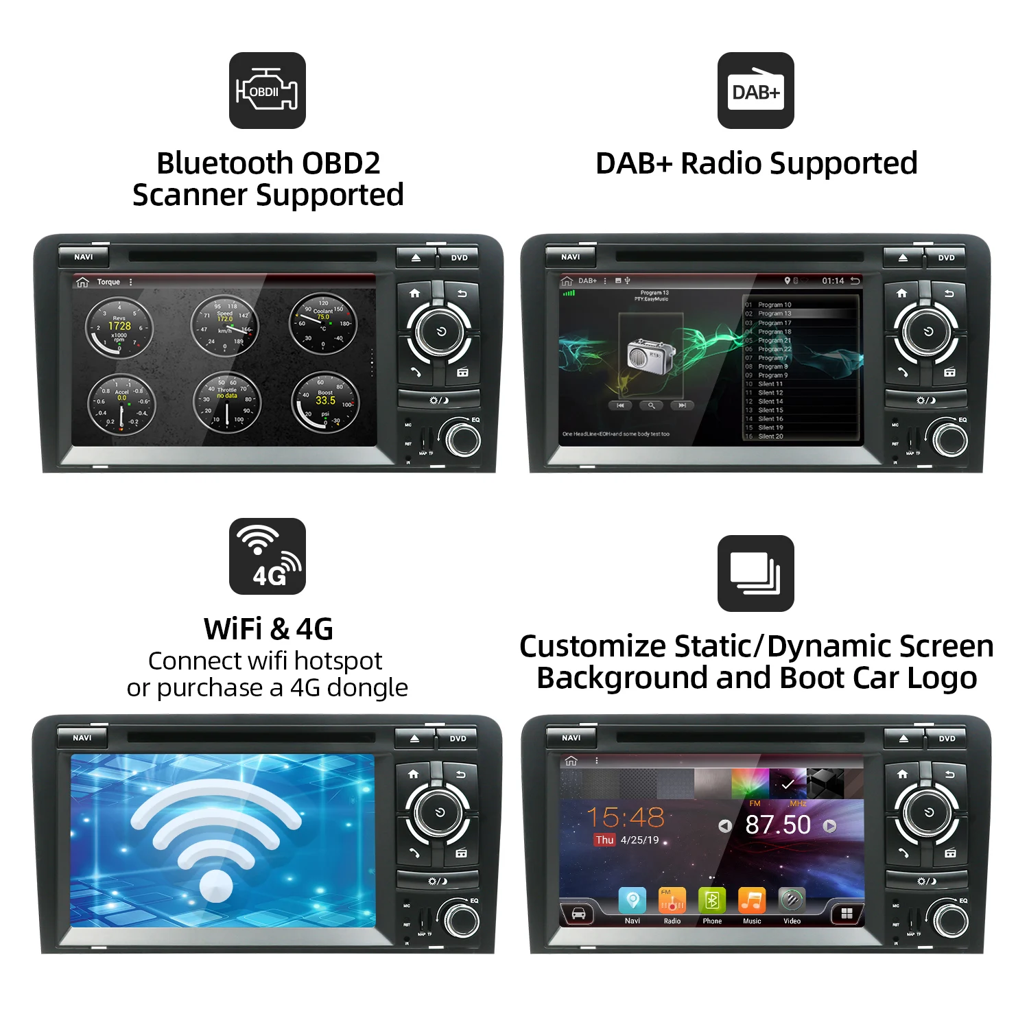 46 Core Android 10 автомобильный DVD GPS для Audi A3 2006-2011 с dv...