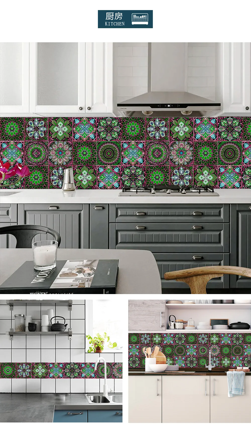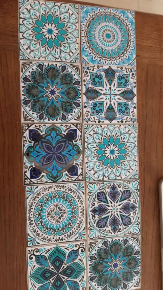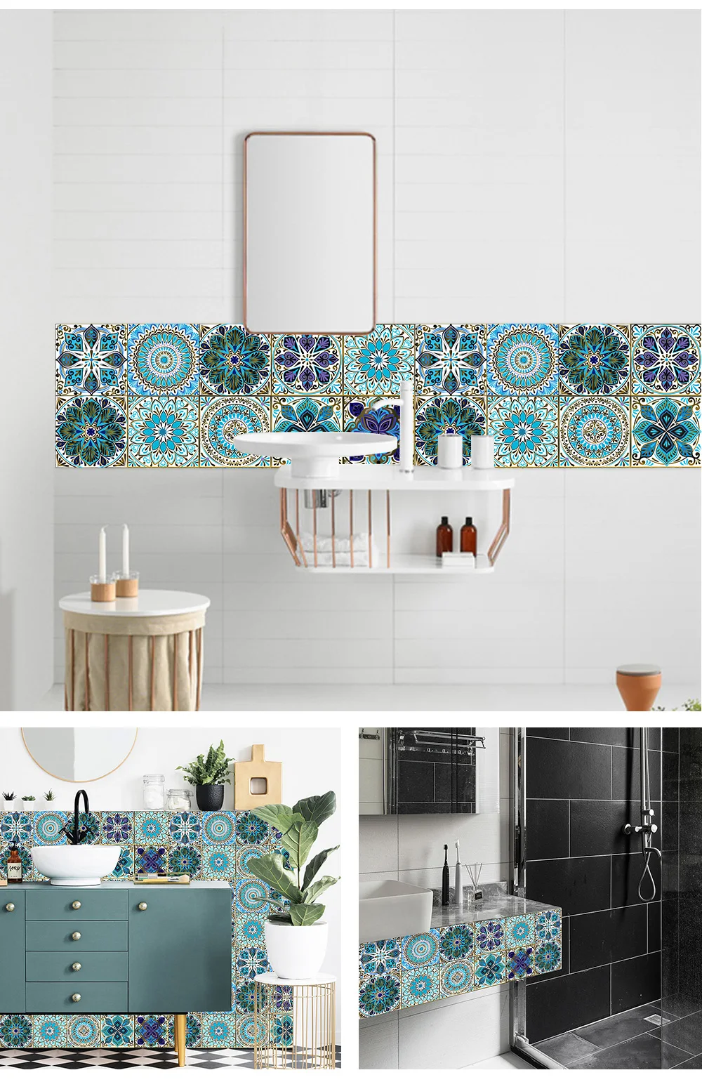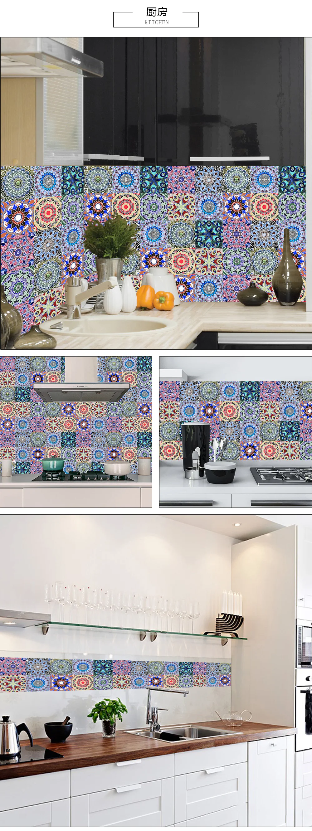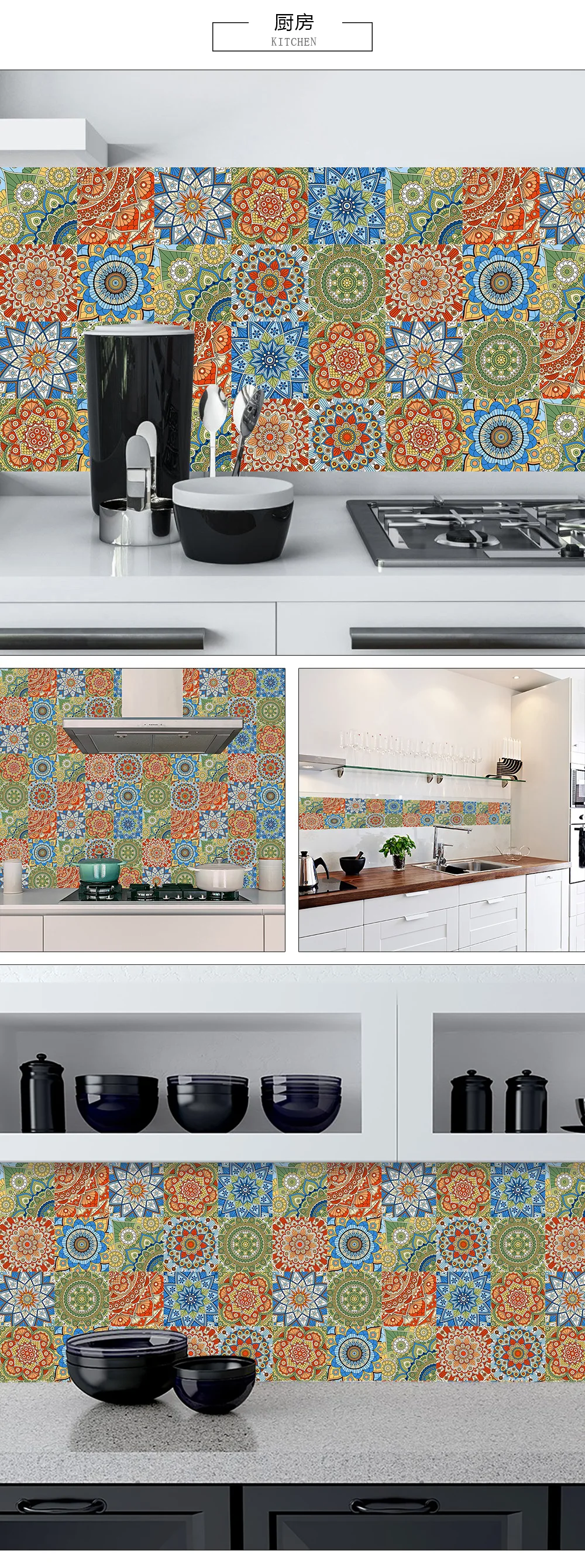10152030 см красочная Мандала стильная плитка наклейка кухняфотоблестящая поверхность искусство роспись и Стик наклейки на стену