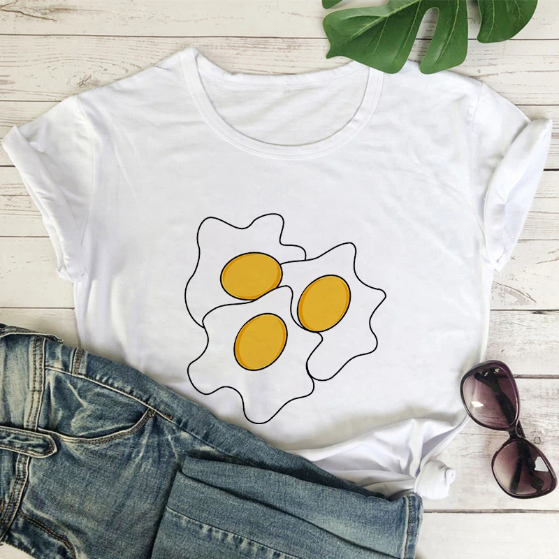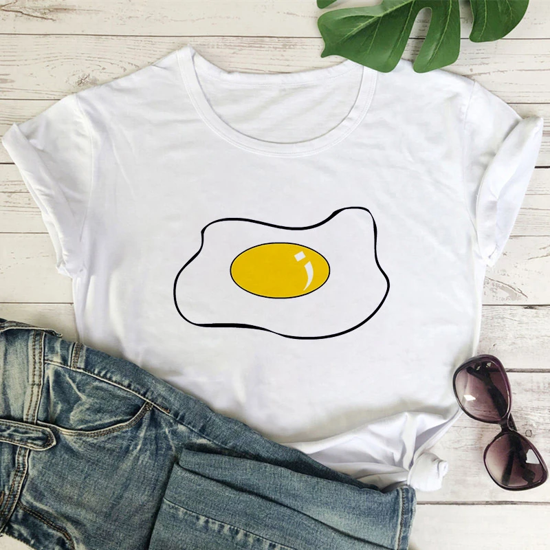 Женская футболка с мультяшным рисунком жареных яиц, топы ольччан, б...