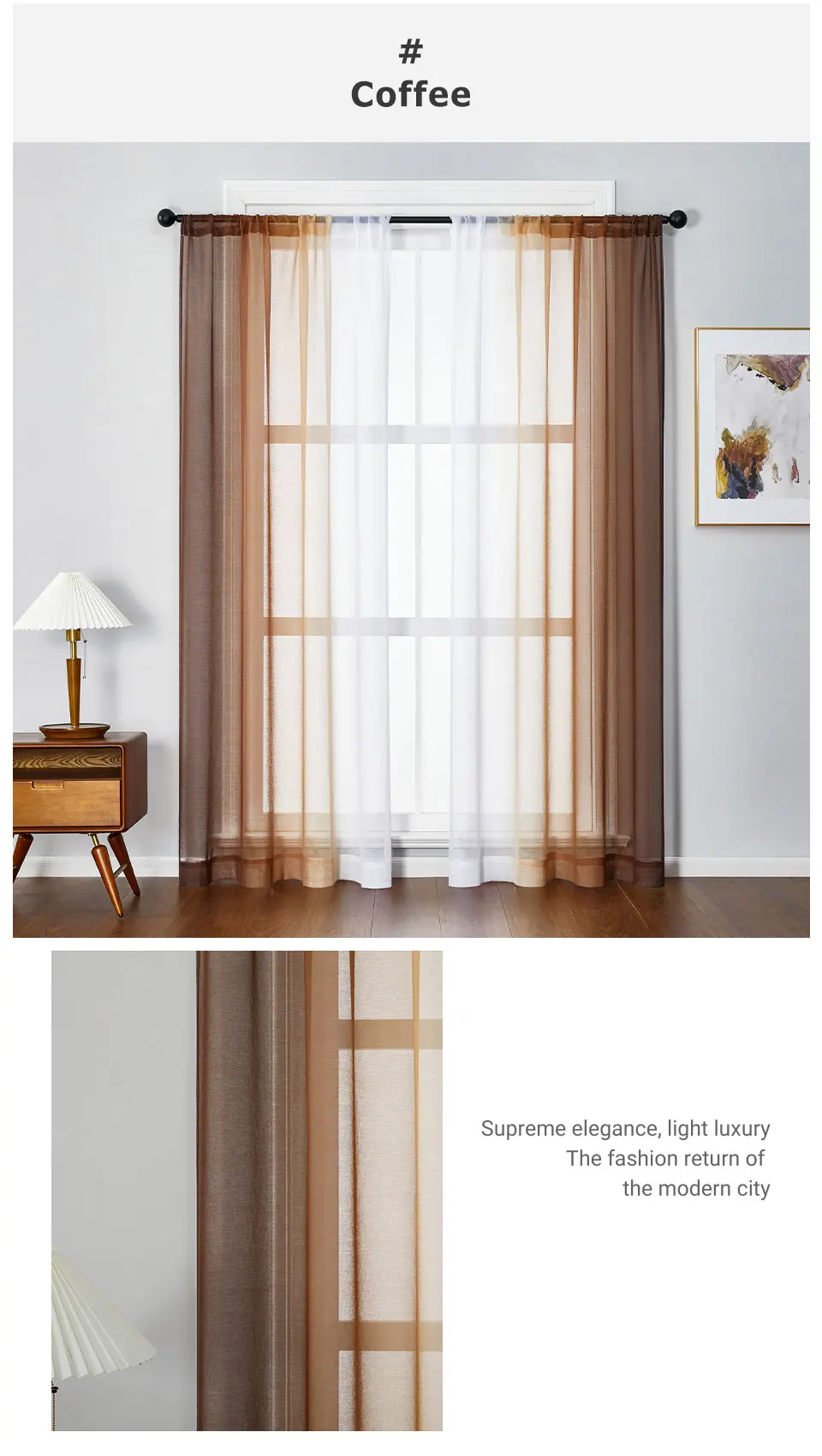 Тюлевые шторы TPS кофейного цвета с градиентом, шторы для гостиной,...