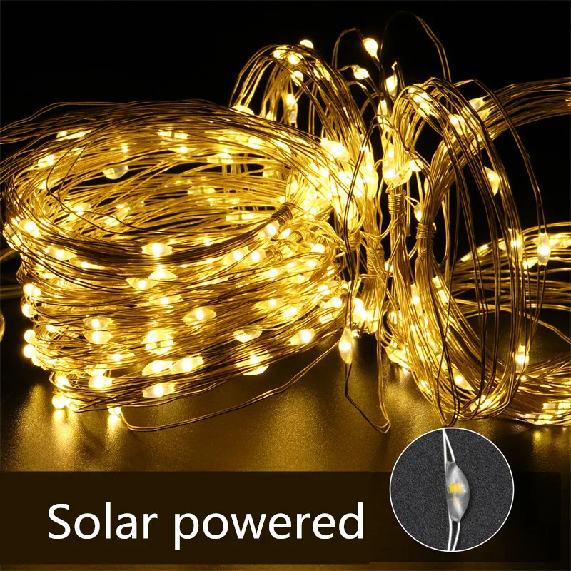 Светодиодная уличная гирлянда на солнечной батарее, наружная сказоч...