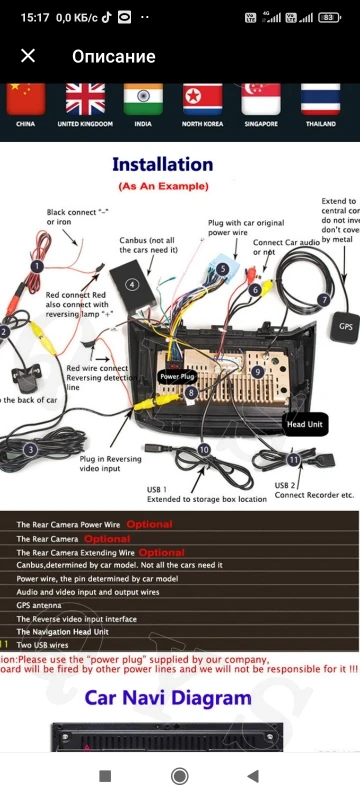 Цена для навигации, включая рамку, головное устройство (экран), жгут питания (подключи и работай).