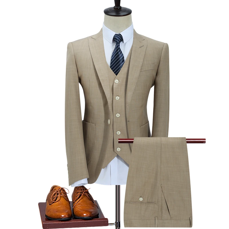 (Куртки + жилет + брюки) 2021 комплект из 3 предметов официальный облегающий смокинг костюм для выпускного вечерамужской свадебный блейзер из чистого хлопка для жениха платье высокого качества