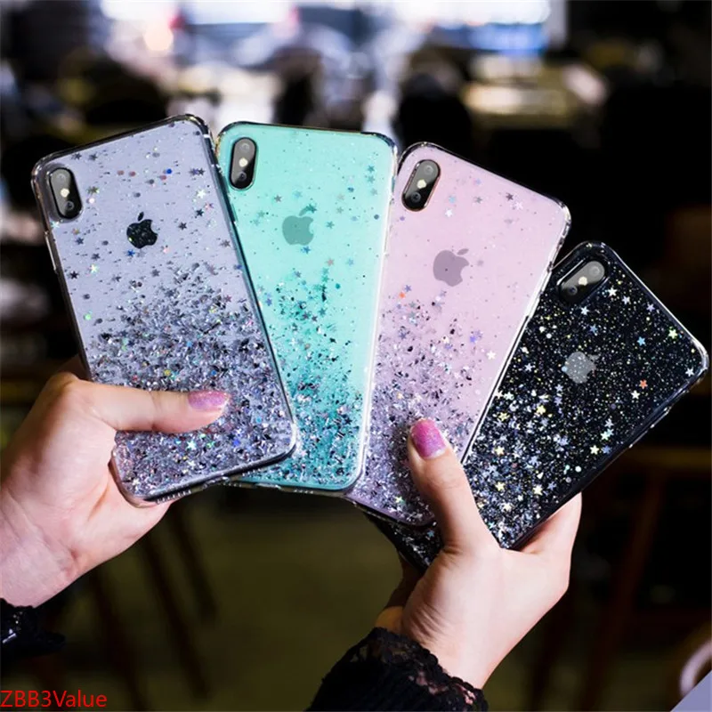 Мягкий чехол с блестками для iPhone 13 mini XR X XS Max 6 6S 7 Plus 8 Plus iphone11 11 pro max, чехол с блестящими звездами 12 Pro max